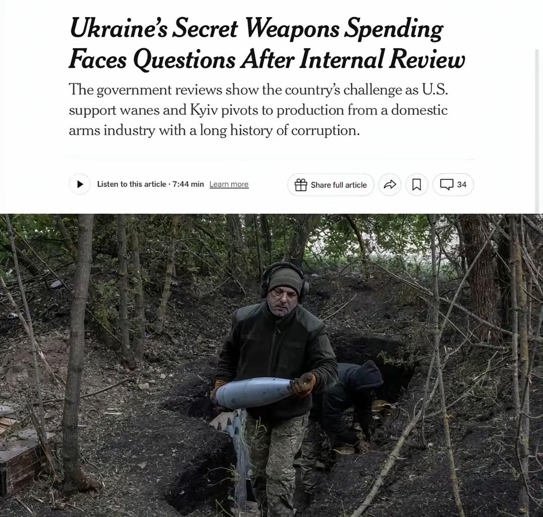 【基辅强大的基因:从上到下薅羊毛】 据《纽约时报》在10月7日发文称,经过美国审计人员前往乌克兰实地调查后发现,乌克兰从上到下都在靠着军事采购合同各种花样式的贪墨钱财,只要合同一出来,上到乌克兰高官,下到经手乌克兰小兵,但凡能经他们手的,他们都会想尽各种办法捞一笔。 如果要问基辅什么基因最强大, 那么毋庸置疑就是贪腐, 从上到下,从下到上, 几乎没有不贪的。 这也许就是乌克兰多灾多难的 一个主要原因。 现在美国人通过实地调查 证实了自己的判断, 而愚蠢的欧盟还在为乌克兰开绿灯。 可怜的是乌克兰,可悲的是欧洲, 这场本不应该发生的冲突, 在多个贪腐的基辅政权误判下, 还是发生了, 祸及了乌克兰与俄罗斯, 也祸及了整个欧洲大陆。