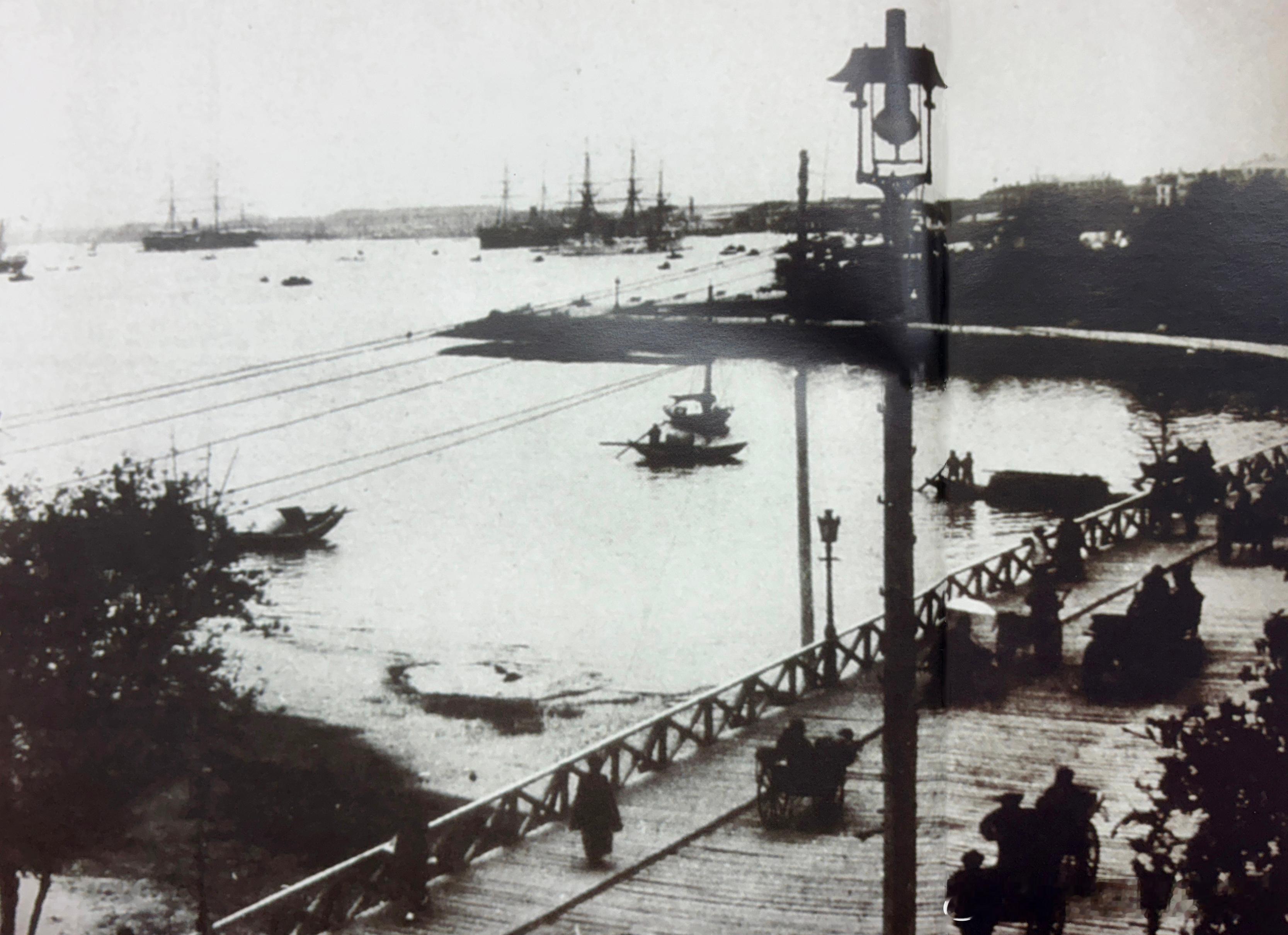 1887年矗立在上海外摆渡桥(今外白渡桥)的电弧灯,它的问世取代了原来煤气灯的道路照明历史影像