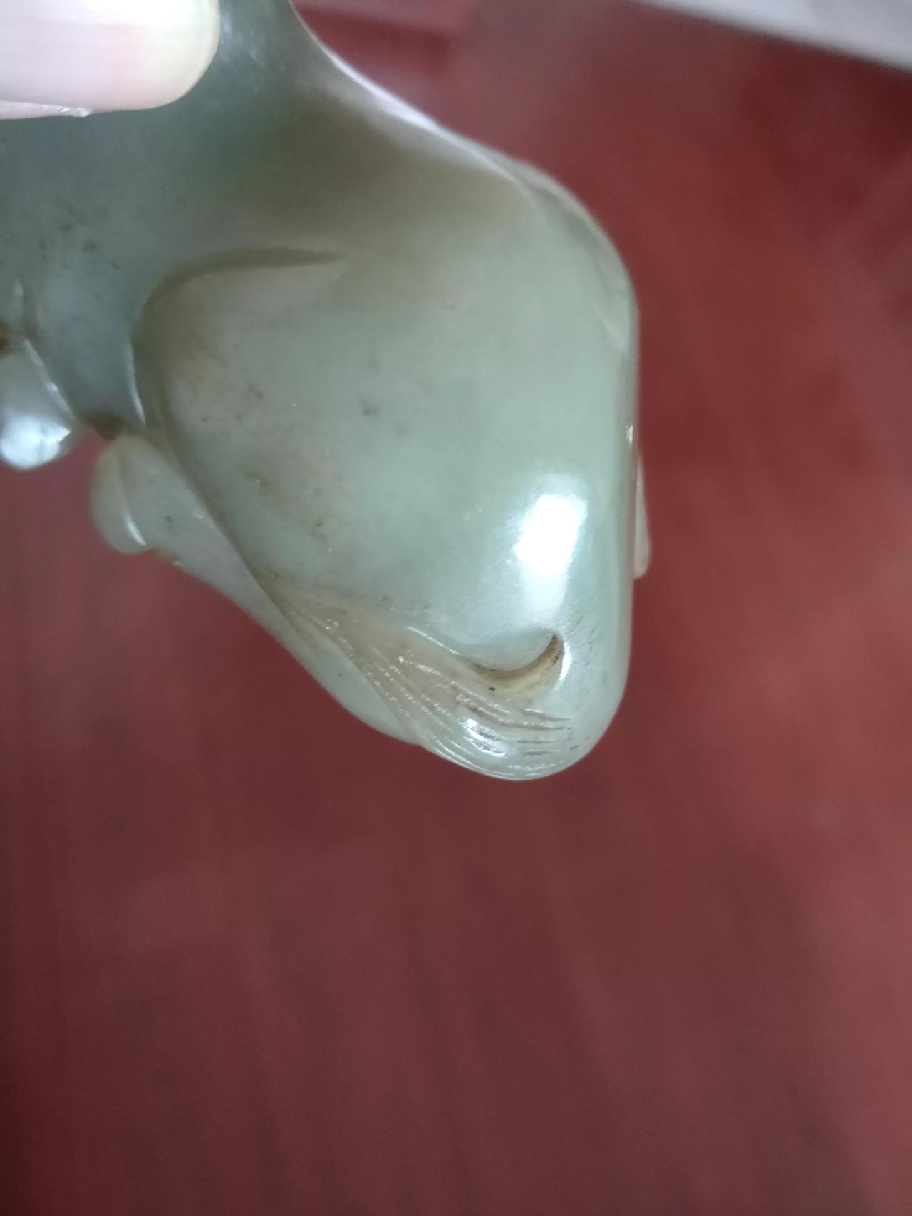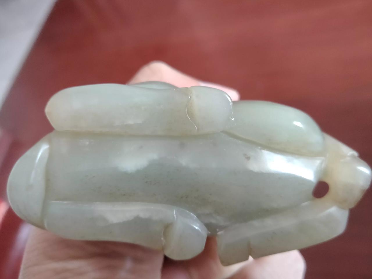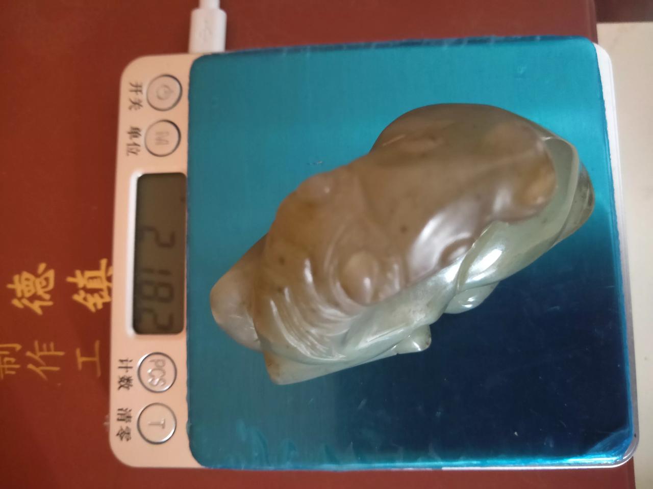 和田青玉卧马,重两百多克,有轻微沁色,有冰裂纹。雕刻生动形象,尤其是头部雕刻写实。料子油性很足,适合把玩。