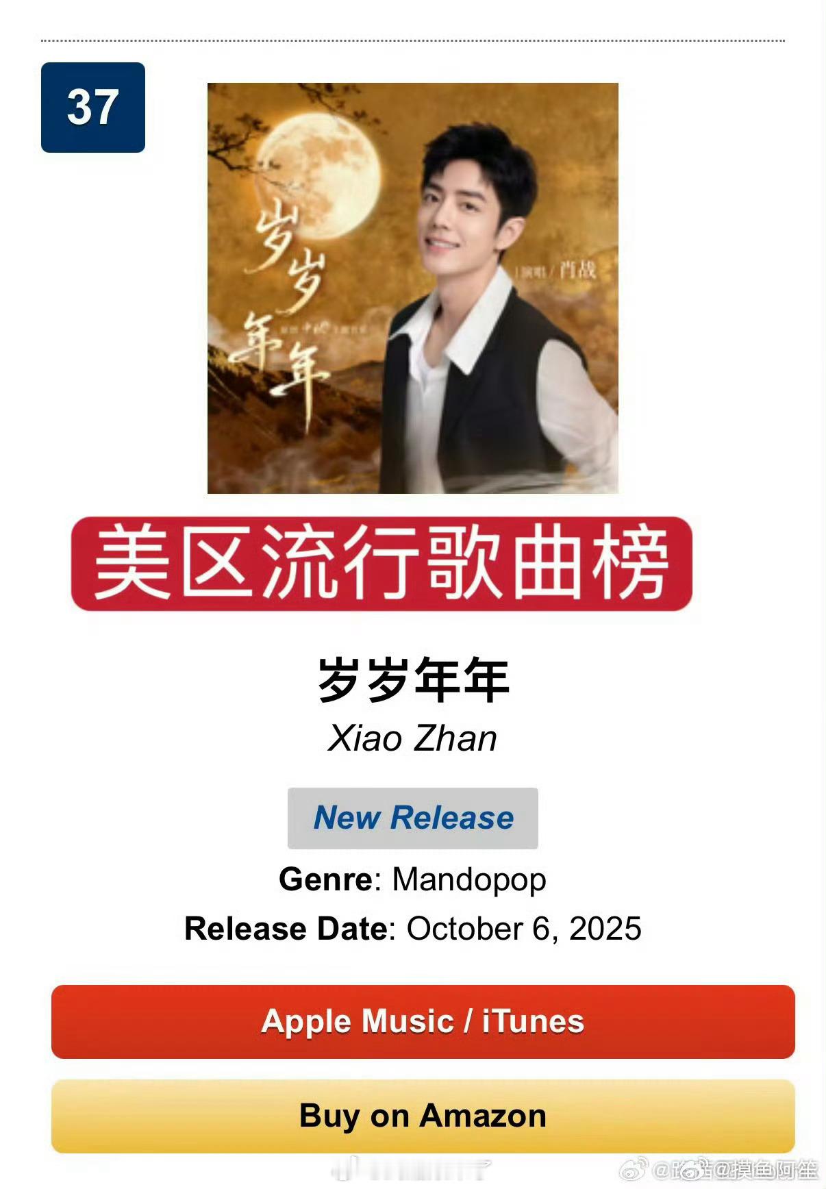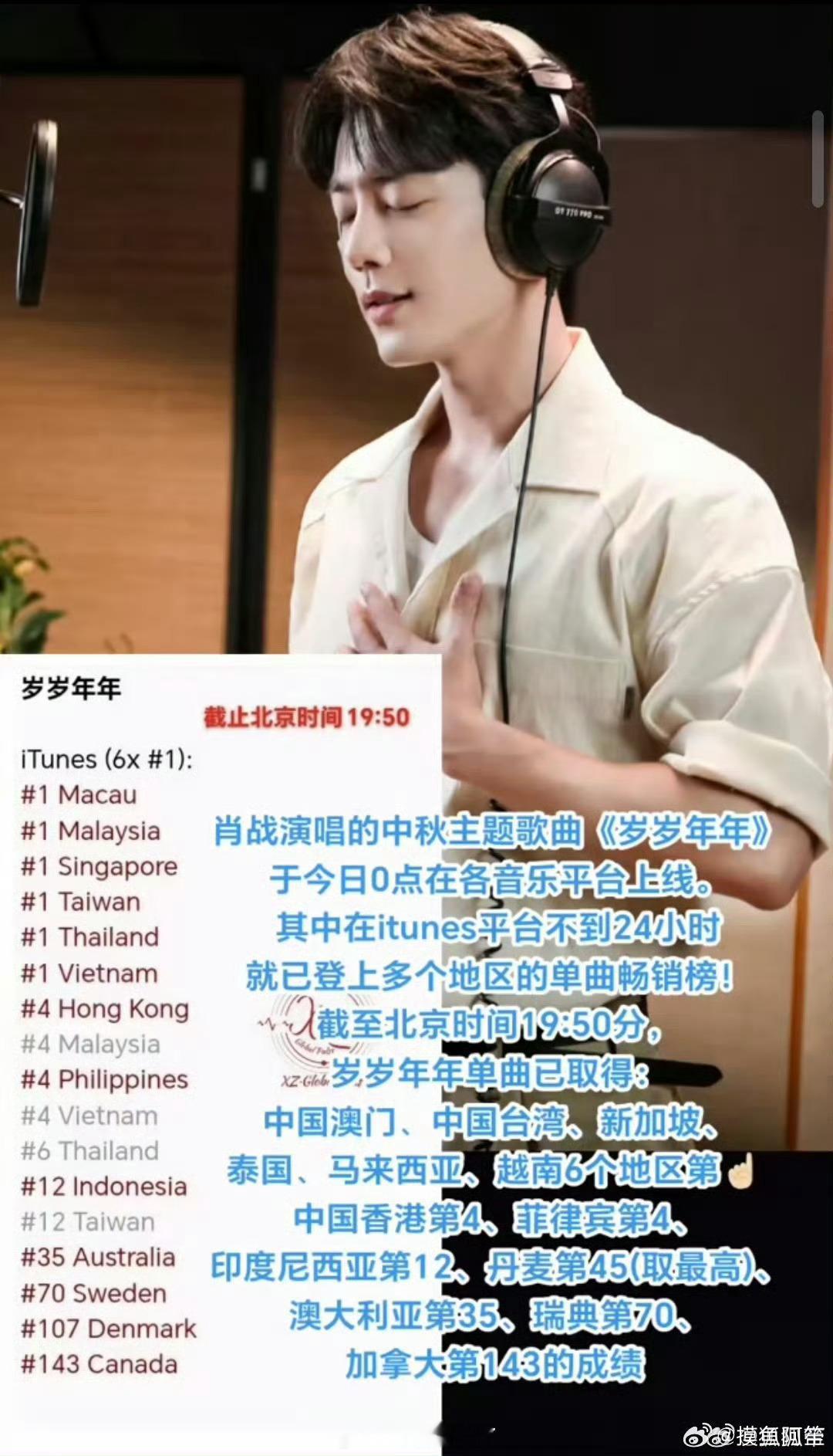 肖战《岁岁年年》于iTunes全球榜强势进榜,攀升至第13名。主旋律歌曲获国际认