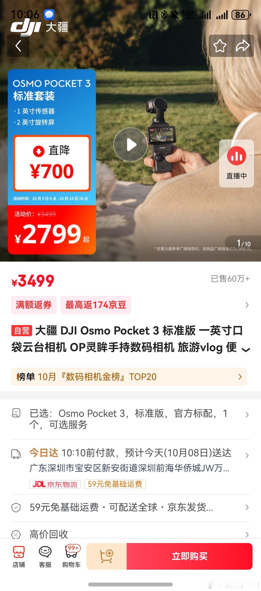套装版一口气降了900,裸机标准版降了700,这清仓清库存的味道很明显啊,估计马上就要出新款Pocket4了。