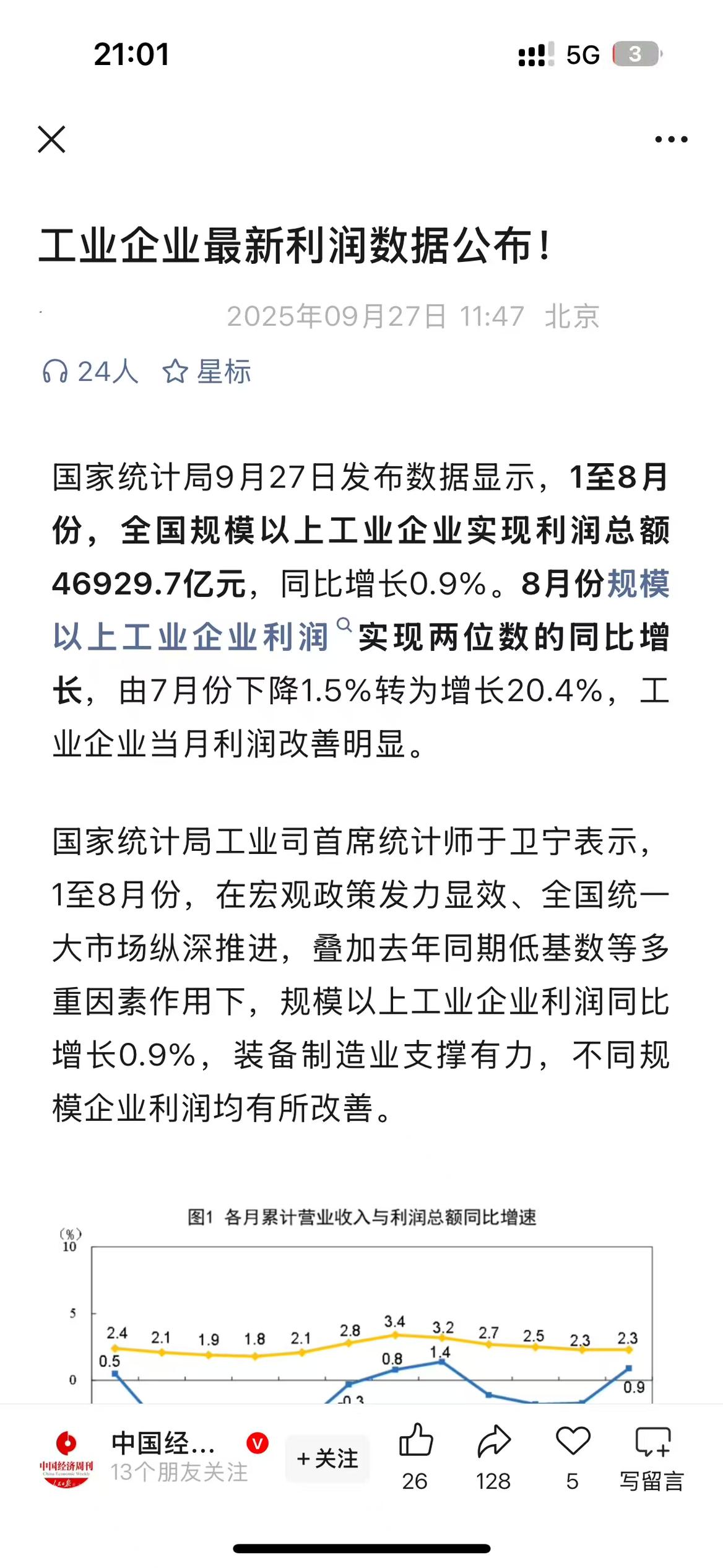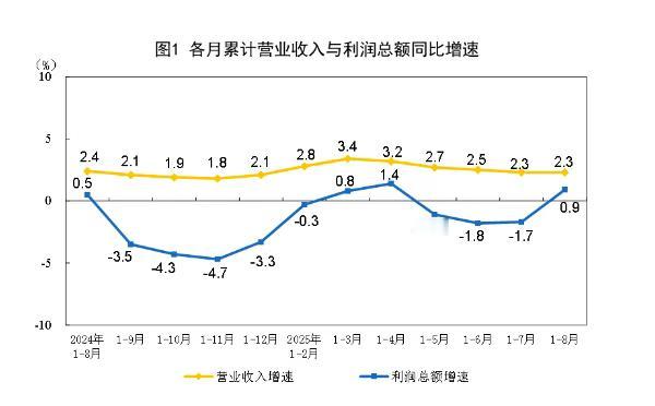 反内卷果然管用了。 国家统计局的新数据,1—8月份,规模以上工业企业利润由1—7