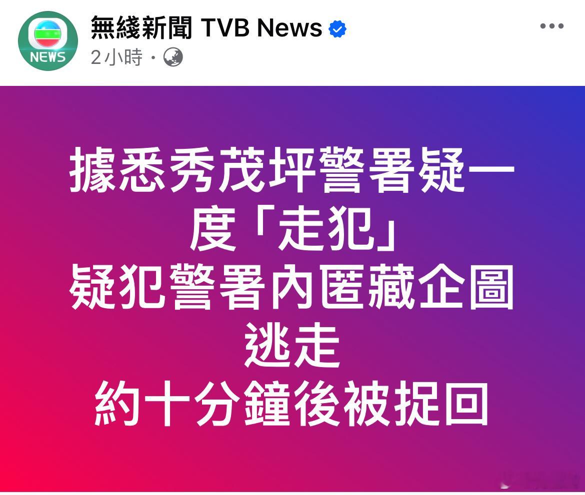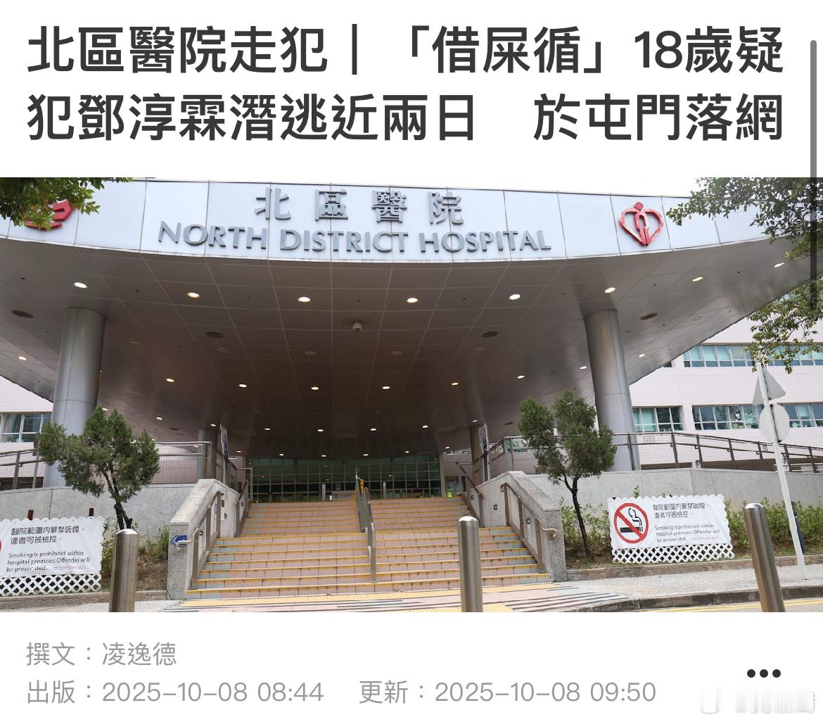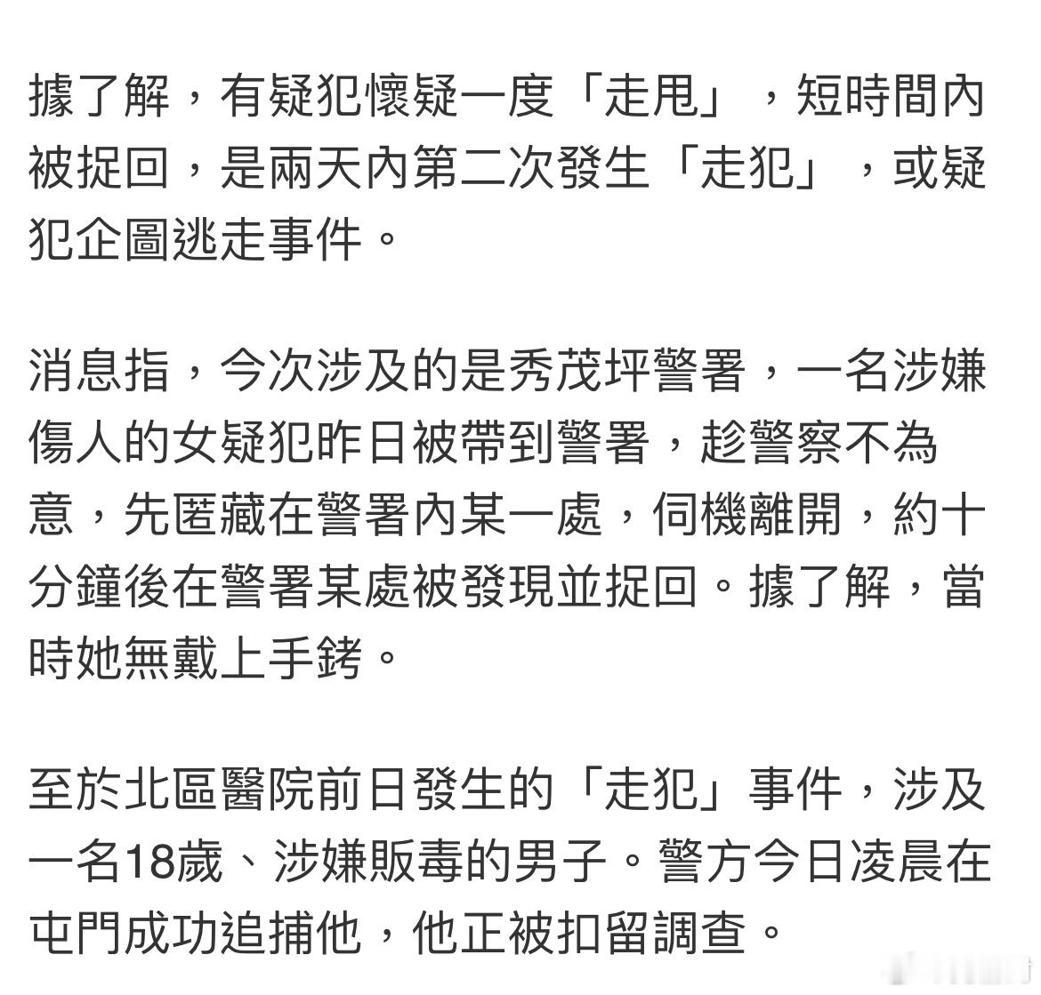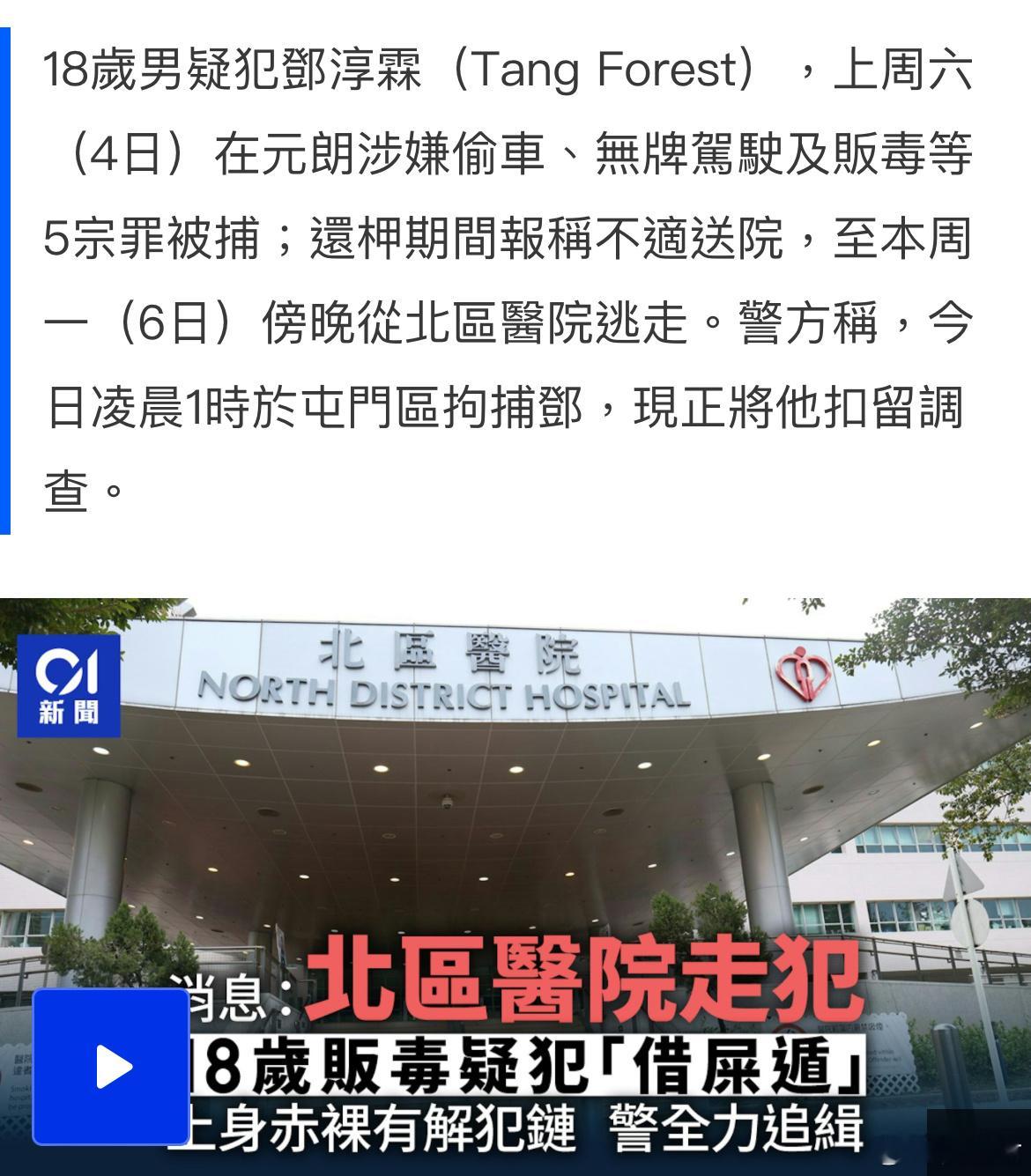 香港18岁毒贩就医时戴铐逃脱港闻