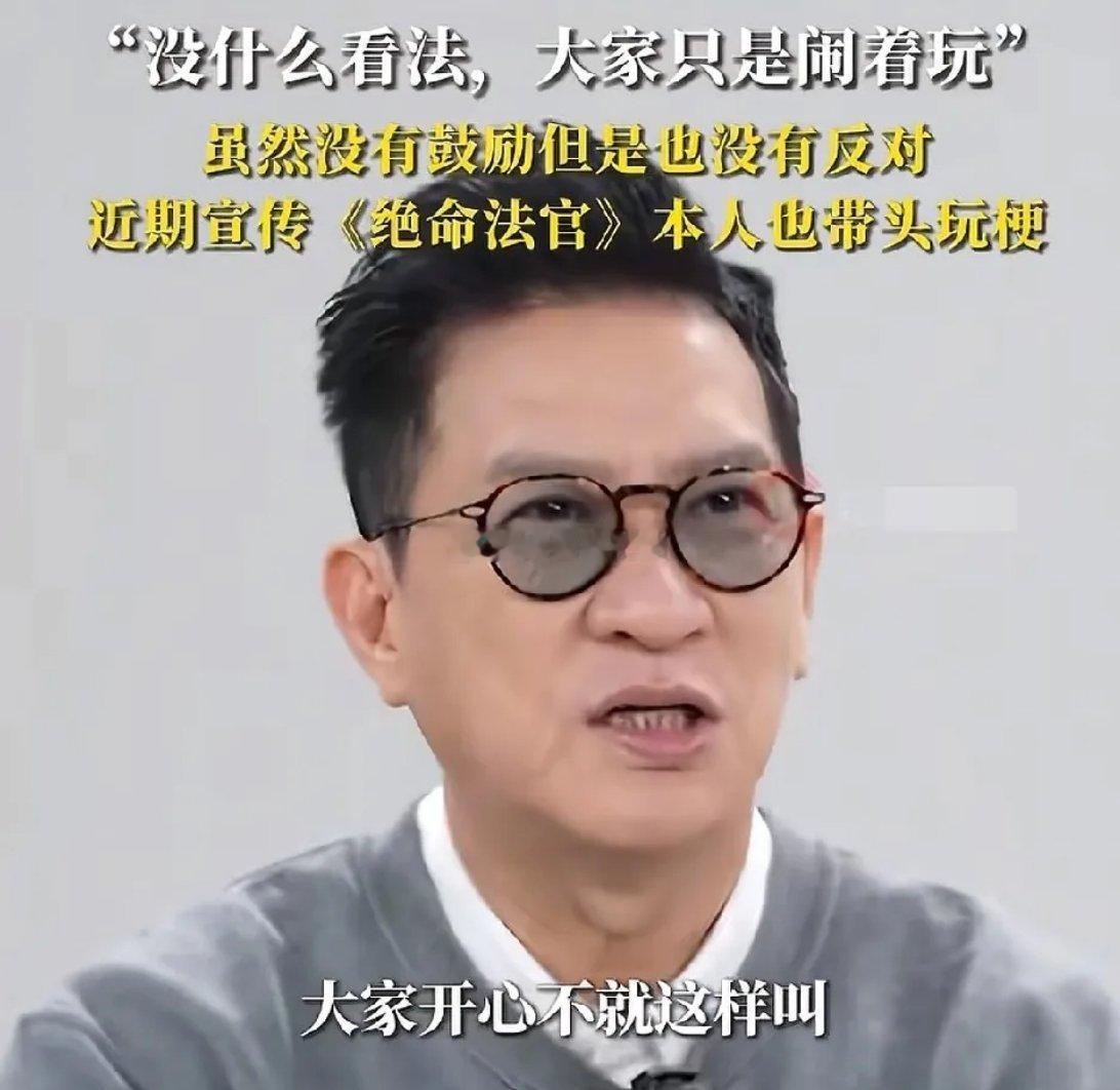 记者问张家辉:“你对大家玩梗渣渣辉有什么看法吗?”张家辉:“我没什么看法,我觉得大家只是闹着玩,虽然我不鼓励,但我也不会反对,大家开心就好。”