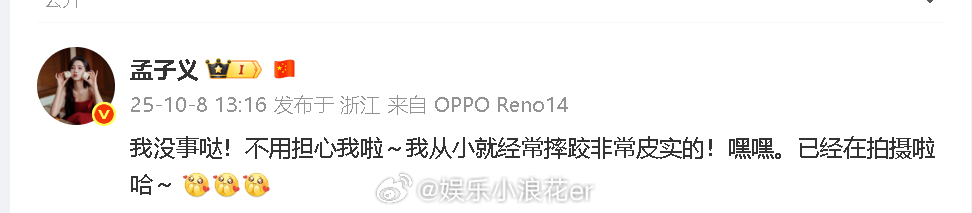 孟子义报平安孟子义拍戏摔了后报平安“我没事哒!不用担心我啦~我从小就经