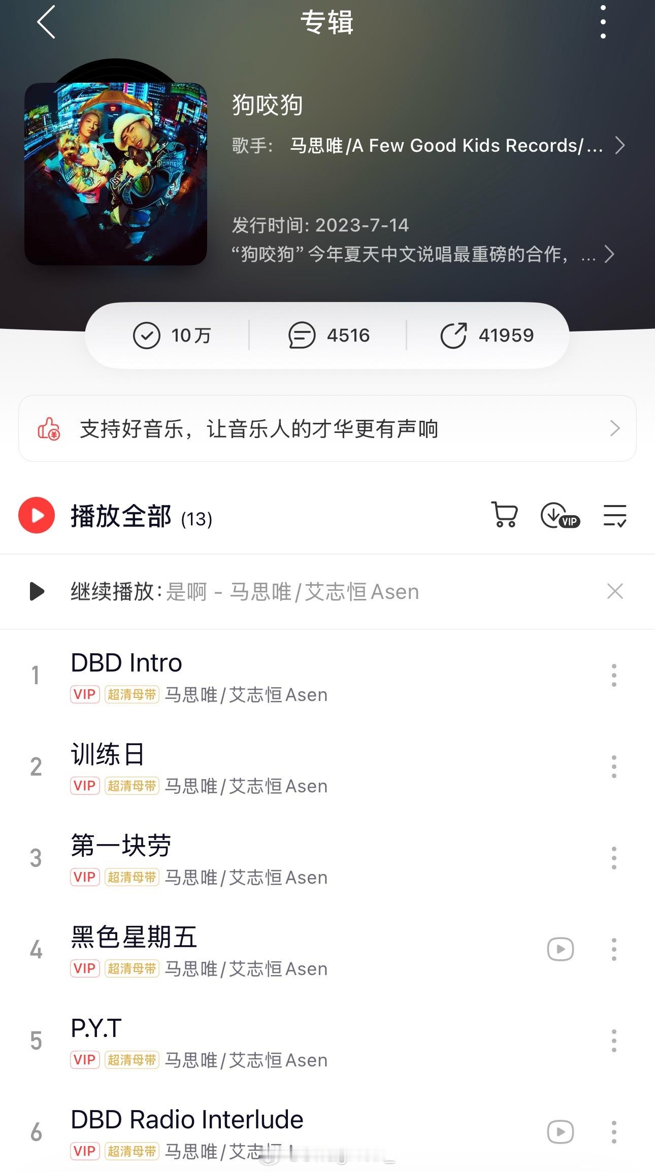 马思唯和Asen的合作专辑《狗咬狗》收藏突破10W+🔥话说这张你最喜欢哪首歌?