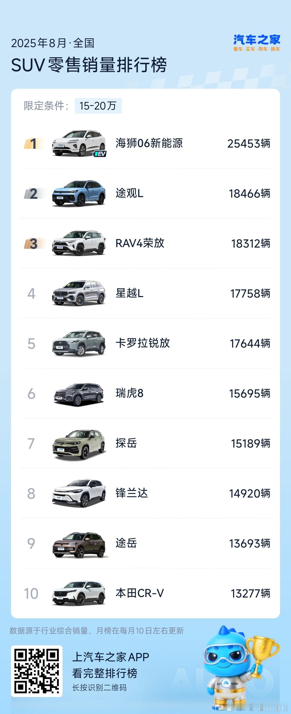 9月全球销量19385台!这辆15万级SUV堪称“六边形战士”,实力均衡无短板,