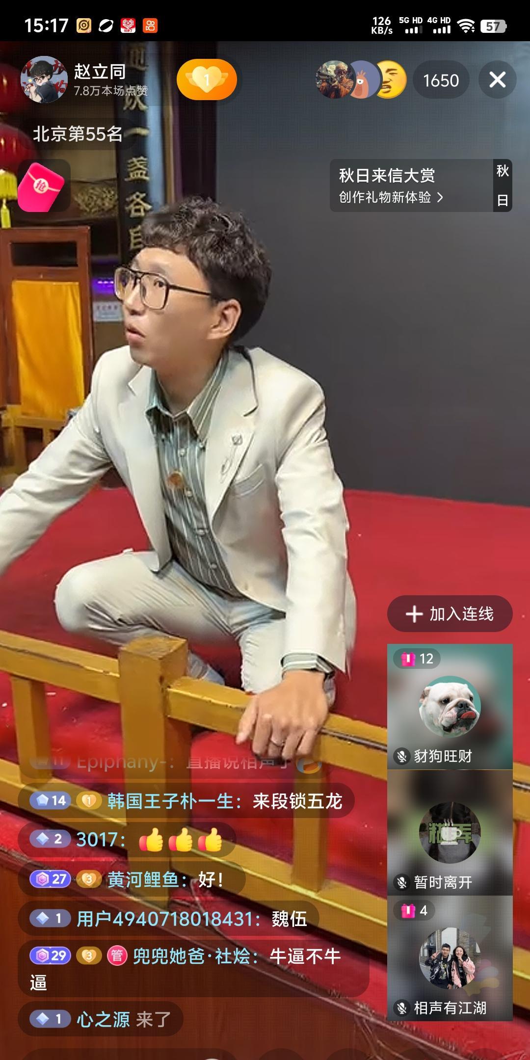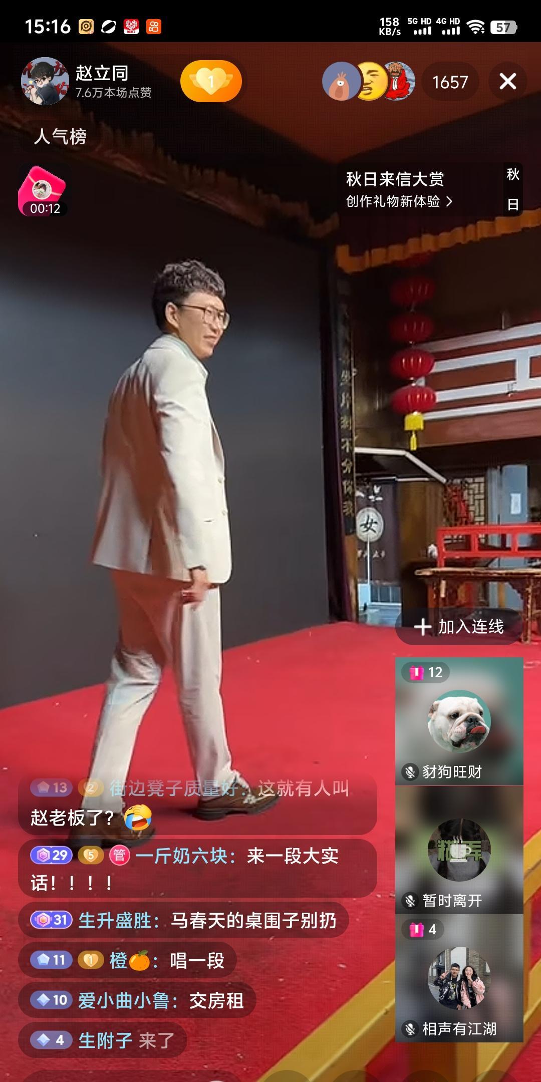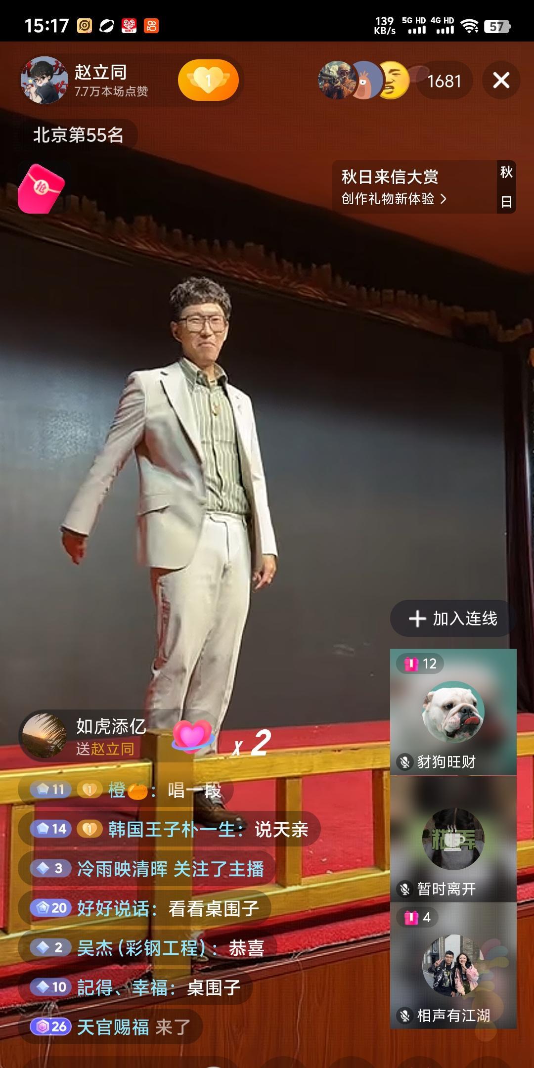 金粉看过来!这地方是不是广茗阁?赵立同直播签合约,今天正式成为广茗阁租客。 他下午直播的时候特意站在台上,回忆起曾经在这里的辉煌,说当年王自健,高晓攀和他赵立同都在这里火爆过一段时间。 同时预告了晚上九点继续直播。 不过从售票网站上看,听云轩晚上还会继续在广茗阁演出。 从赵立同的直播中,其实他也说过不止一次,可以让听云轩继续在这里演出。 而他的喜笑会一样也会在这里演出,就是不知道到时候是怎么个合作形式。 有兴趣的人晚上九点去看他直播,今天下午他直播间1700多人。