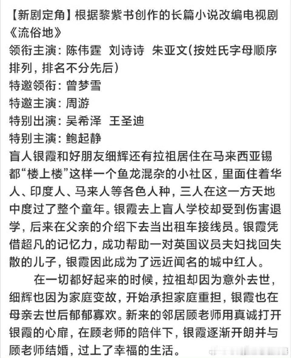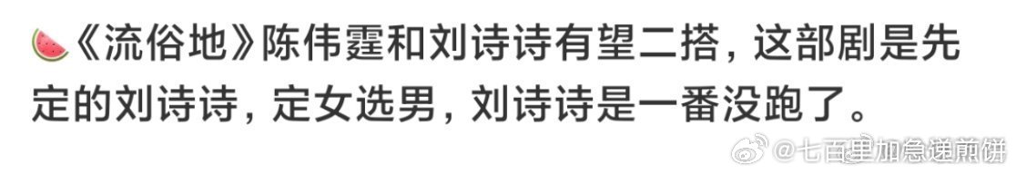 🍉刘诗诗、陈伟霆二搭《流俗地》,