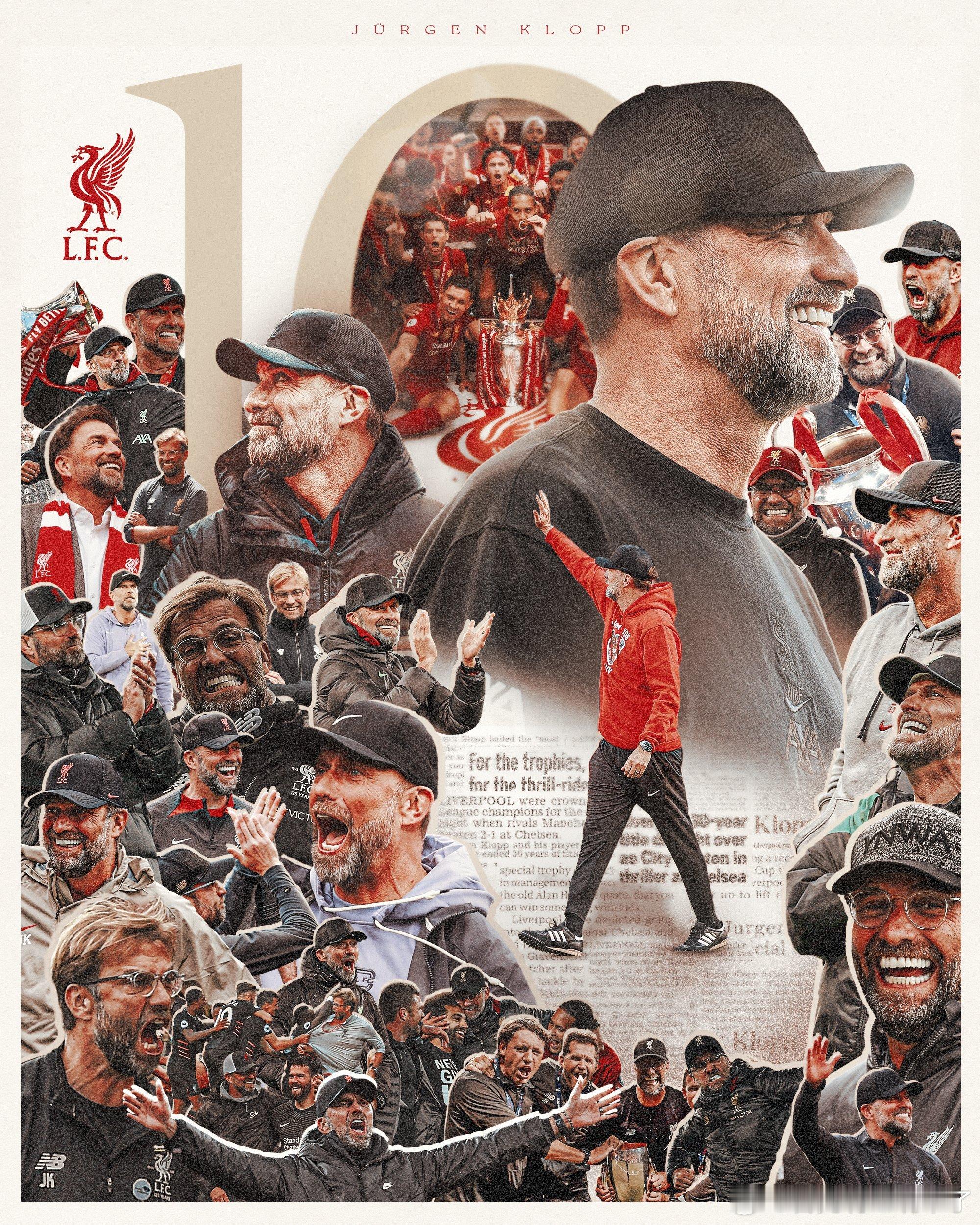 克洛普成为利物浦主帅十周年,真快啊 这十年是快乐的