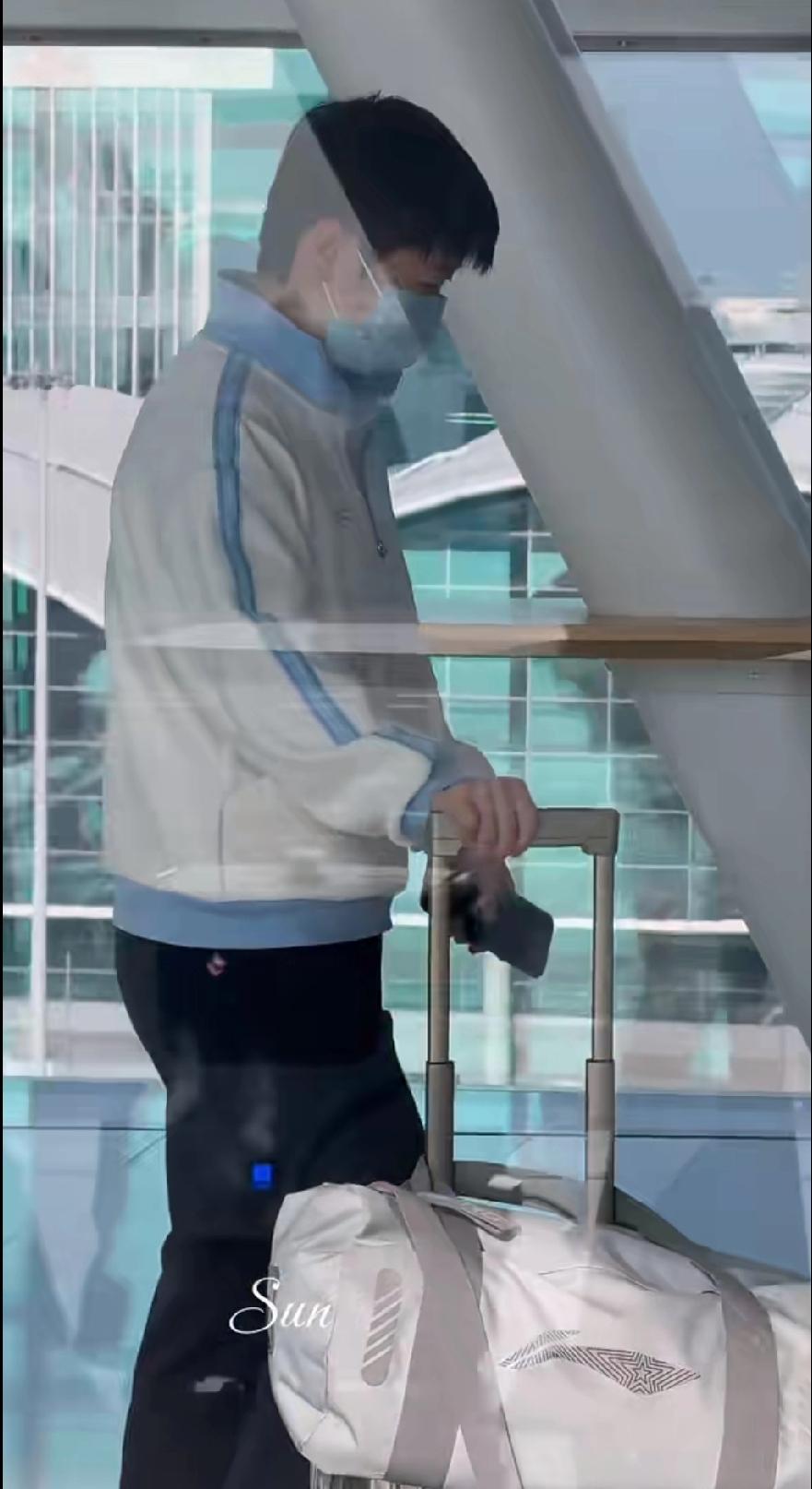 🇮🇳印度亚锦赛即将开赛,莎莎戴着口罩现身机场,推着行李箱、带着装备,步履从容