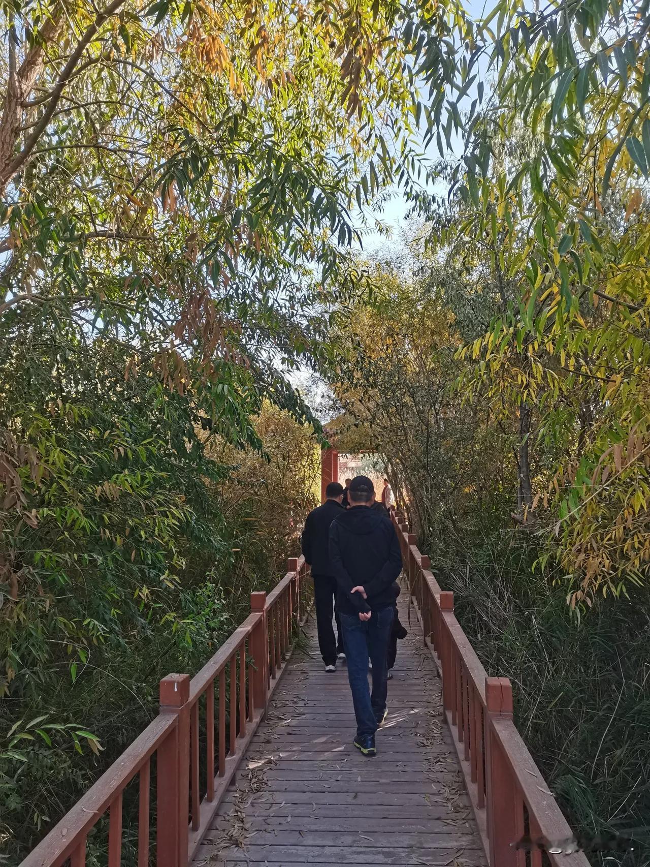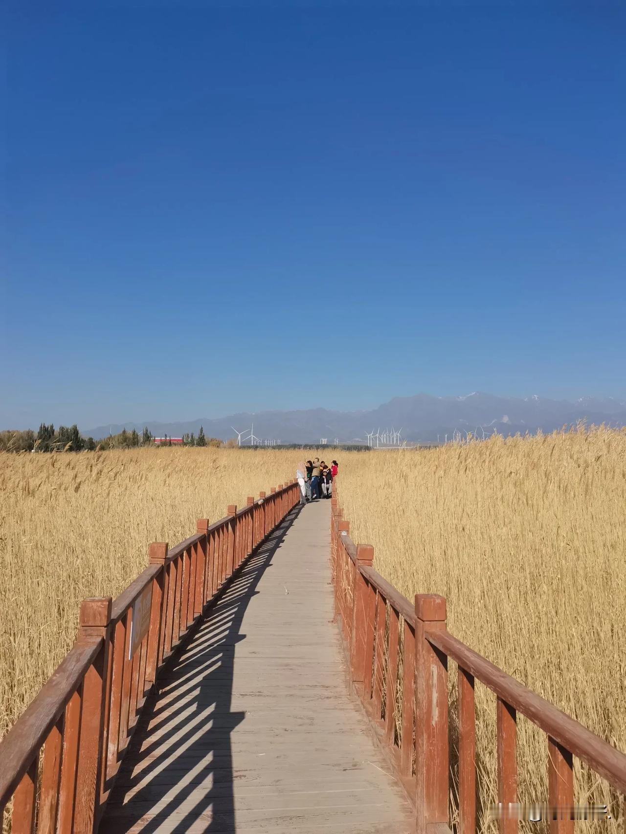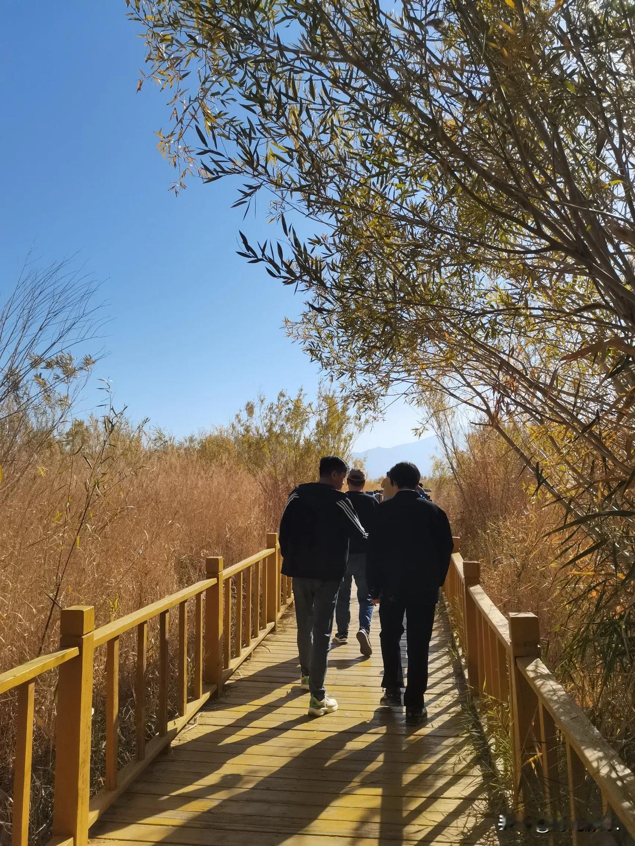 昨天中午,趁着天气好,和家人去了柴窝堡国家湿地公园。 到柴窝堡必得先去吃一顿辣子鸡。不知平时是什么状况,节日期间的“柴窝堡辣子鸡一条街”路两边的车停得满满当当。几乎每家店里都是热热闹闹,名气大的饭馆门口还在排队等位。我们也凑个热闹,找了网上评价好店美餐一顿。 柴窝堡国家湿地公园就在辣子鸡一条街旁边,二者相互成就,来吃鸡的人想必也要顺便来公园里转一转。节日期间,8元的公园门票还打八折,游人络绎不绝。 金秋10月,湿地公园一片金色,放眼望去,茂密的芦苇荡像丰收的麦田。木栈道在芦苇丛中延伸 ,毛茸茸的芦苇花在风中摇曳。 顺着木栈道走在芦苇荡深处,身边一人多高的芦苇丛密密匝匝的好像一面墙。不由得想起《黄河大合唱》中“青纱帐里游击健儿逞英豪”,这浓密的芦苇丛就像那掩护游击队员的天然屏障。 景区里有观鸟台,还有许多保护鸟类的提示牌,但却没有见到鸟 。也许是这个季节鸟儿们已经迁徙了。 秋日暖阳里,来这里走走路、晒晒太阳也是不错的选择。