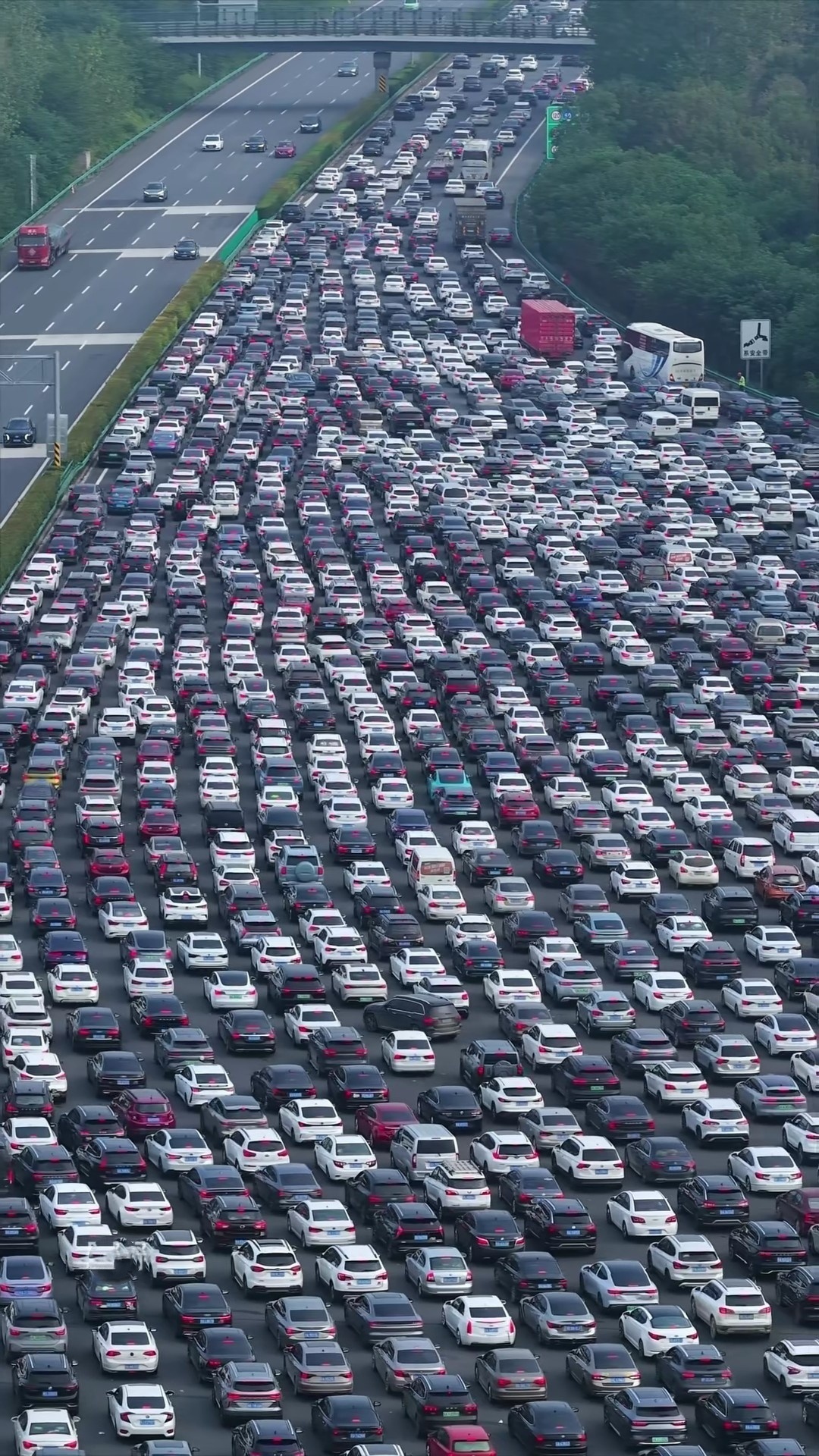 收费站说了,长假日均车流量超12万台次,是平常近3倍,但并没有出现拥堵,只是车多。