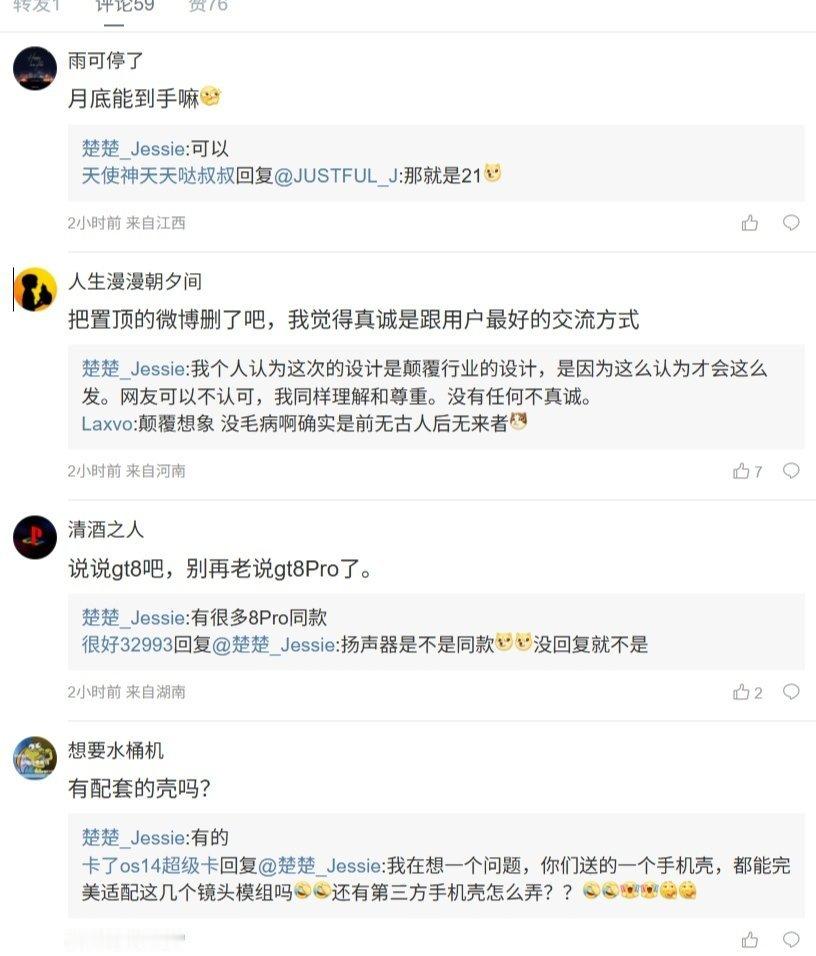 另外,realme 中国区 CMO 还在微博评论区与网友互动:针对新机月底能到手吗,她表示“可以”;针对是否有配套的壳,她回复“有的”。