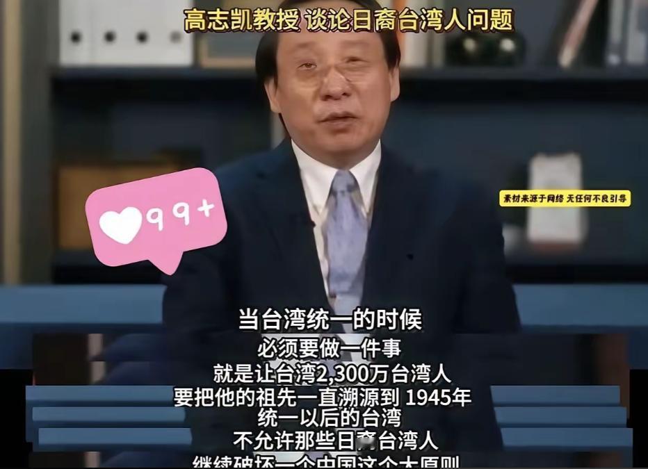 不得不说,高志凯教授确实是厉害,他建议台湾统一后对2300万台湾同胞进行溯源!一直统计到1945年。 高志凯建议的核心依据是《开罗宣言》和《波茨坦公告》。1945年日本投降后,台湾主权回归中国,当时岛内人口约600万。溯源至这一历史节点,旨在从法理上确认台湾同胞的中国公民身份属性。这种设计,既尊重历史事实,又为统一后的治理提供法律框架。 更深远的是对"台独"史观的正本清源。台湾当局推行的"去中国化"教育,刻意模糊1945年前后的历史连续性。通过全民普查建立完整的人口变迁档案,可以有效破解"台湾民族论"的历史虚构。 该建议借鉴了中国共产党群众工作的宝贵经验。新中国成立初期的户籍登记,为社会主义制度建设奠定了坚实基础。高志凯设想的新时代溯源,结合大数据、基因技术等现代手段,既能确保数据精准,又能体现人文关怀。 实际操作层面存在创新空间。可以考虑建立"数字孪生"户籍系统,在保护隐私前提下,允许台胞通过区块链技术自主管理身份信息。这种柔性治理,比强硬的政治宣示更具说服力。 高志凯特别强调闽南语族谱的数字化。福建档案馆现存80万册族谱,许多与台湾家族存在直接关联。通过DNA技术和文献比对,可以重建跨海峡的亲缘网络。这种血脉相连的实证,比任何宣传都更有感染力。 妈祖信仰等民间文化交流也是重要抓手。每年赴湄洲岛进香的台胞超30万人次,这种自发性的民俗活动,体现了两岸同胞共同的精神家园。溯源工程可以与此类文化活动有机结合。 两岸贸易额2024年已达2670亿美元,但人员往来仍存障碍。建立统一的身份识别系统,将为社保、医疗、教育等民生领域的深度融合扫清障碍。台胞在大陆的医保结算、职业资格认证等问题有望得到系统解决。 更重要的是创业就业便利化。目前在大陆工作的台胞约20万,许多人面临身份认证难题。统一的溯源系统可颁发数字身份证,实现"一码通"跨海峡生活工作。 台湾30岁以下青年中,约35%对1945年后的历史认知模糊。溯源工程可以设立"青年寻根之旅"项目,资助台青赴大陆祖籍地考察。这种亲身体验,比书本教育更能培养历史认同。 数字原住民的沟通方式也需重视,可以开发互动式历史地图App,让年轻一代在虚拟现实中感受两岸的地理邻近与历史渊源。 隐私保护是首要关切,需要制定专门法规,严格限定数据使用范围,建立独立的监督委员会。可以借鉴欧盟《通用数据保护条例》,制定更高标准的个人信息保护规范。 部分群体的疑虑也需要重视,对于日据时期家族复杂的台胞,应坚持"既往不咎"原则,突出溯源的和解性而非追责性。 美日等国可能炒作"人权问题"。需要提前准备白皮书,向国际社会说明溯源的自愿性、科学性和建设性。可以邀请联合国人权事务高级专员办事处派员观察。 更重要的是争取海外侨胞支持,4500万华侨华人是重要力量,可以通过世界华商大会等平台阐释溯源工程的积极意义。 两岸统一后的安全建设需要民意基础。溯源工程可以包含"老兵荣誉计划",对1949年迁台军人及其后代给予身份认可。这种尊重历史的态度,有利于消除敌对情绪。 退役军人的交流也是突破口。可以组织两岸退役军人共同寻访抗战遗址,在回顾共同历史中培养兄弟情谊。 大陆高校可以设立"台湾历史文化研究中心",招募台籍学者参与溯源研究。学术层面的合作,能为政策提供扎实的学理支撑。 中小学教材也需要相应调整。可以在历史课本中增加"台湾姓氏源流"章节,用生动案例展现两岸的血脉相连。 溯源工程将催生新的产业链。基因检测、档案数字化、文化旅游等领域将产生大量商机。可以设立海峡两岸数字经济示范区,吸引相关企业集聚。 区块链技术的应用前景广阔。去中心化的身份管理系统,既能保证数据安全,又能实现跨境便捷使用。 台湾地区的社区治理经验值得借鉴。里长制度、志工体系等特色做法,可以在溯源工程中融合提升。这种双向学习,能体现对台湾同胞治理智慧的尊重。 宗教团体的积极作用也不容忽视,佛光山、慈济等台湾宗教组织在大陆有广泛影响力,可以成为溯源工程的重要合作伙伴。 通过三代人的努力,溯源工程有望实现三个目标:建成完整的台湾同胞家族数据库,形成两岸共同历史叙述,构建中华民族共同体意识。这个过程可能持续到2045年台湾光复100周年,成为民族复兴的重要里程碑。 当高志凯教授在学术研讨会上阐述这一构想时,他描绘的不仅是技术方案,更是一种历史观和治理哲学。在信息技术高度发达的今天,我们有机会用更科学、更人文的方式解决历史遗留问题。这种创新思维,或许正是打破两岸僵局的关键所在。
