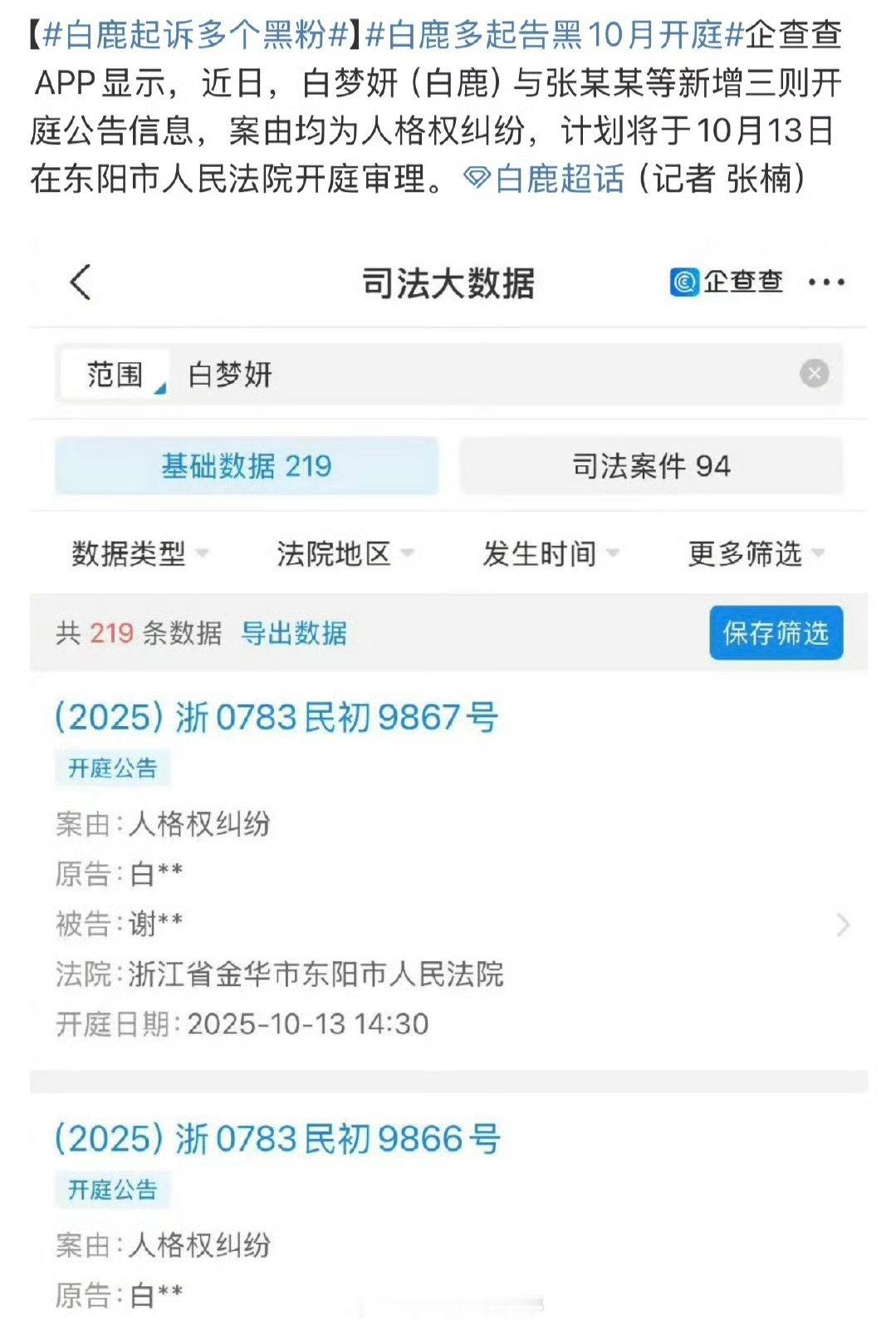 白鹿告黑,支持白鹿维权!