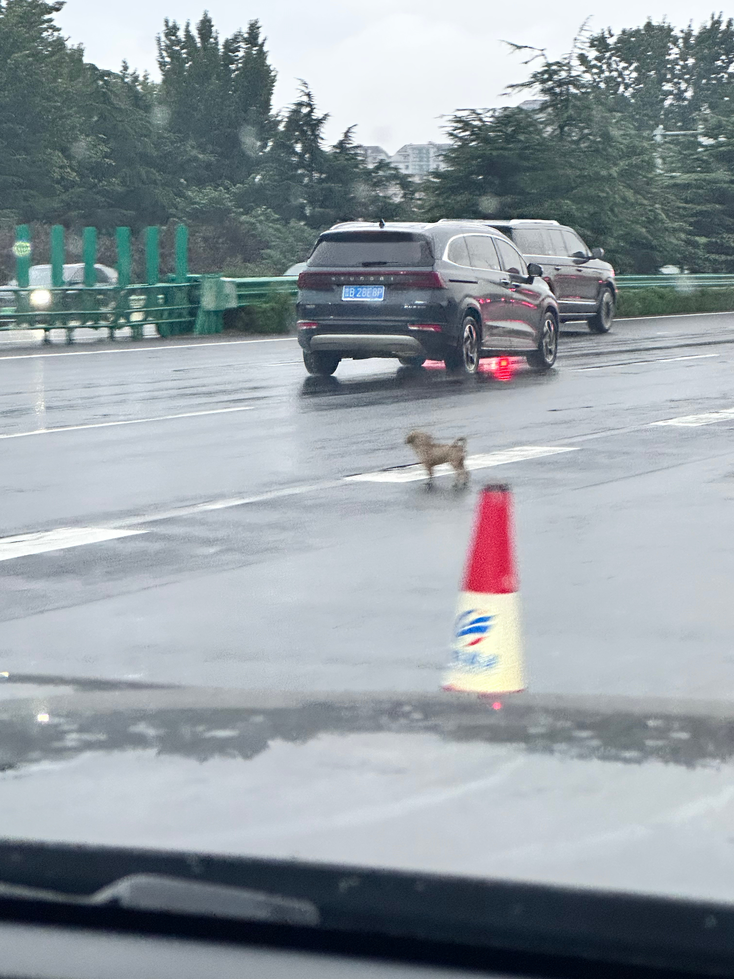 高速上还碰到个小狗,不知道是哪个缺德的把小狗扔在高速了[费解]太可怜了