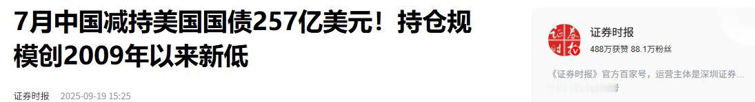 [熊猫]还以为中国抛售美债,只是普通操作?错了!真相是,我们正踩着俄罗斯 3000 亿资产被冻结的血泪教训,抢在美国信用崩盘前跳船!可再看日本,揣着 1.15 万亿美元美债当宝贝,7 月还追加 38 亿增持,成了下一个,即将被美国 “活埋” 的陪葬品! 中国这几年一直在减持美债,速度快得让人咋舌,2023年以来连着六个月往下砍,持仓已经掉到近年最低点。 这可不是钱多了没地儿花,而是中国看透了美元这艘大船的漏洞,抢着在它彻底漏水前跳船! 想想2022年俄罗斯的教训,3000亿美元资产被西方一夜冻结,血淋淋的例子摆在那儿,谁还敢把鸡蛋全放美元篮子里? 美国现在欠债35万亿,利息都快还不下了,市场对美元的信心早就开始晃悠,再加上美国动不动就拿金融制裁吓唬人,SWIFT系统、资产冻结随便用,谁还敢把命脉交给它? 中国的操作可不只是甩卖美债这么简单,国内经济有压力,房地产和地方债得花钱稳,抛点美债换现金,灵活得很。 中国在下一盘大棋:人民币国际化!跟巴西、阿根廷这些国家搞人民币结算,贸易用自己的货币,谁还稀罕美元? 再看看黄金储备,中国的金库可是越堆越高,明显在防着美元哪天真崩了,中国这波操作真够清醒,硬是把风险掐在前面。 再看日本,真是让人替它捏把汗! 2025年2月,日本的美债持仓创了新高,1.13万亿刀,7月还加码38亿,稳坐美国最大债主宝座。 表面看,日本这是想靠美债的高收益稳住日元,顺便抱紧美国大腿,可这招,真的稳吗? 俄罗斯的3000亿资产被冻结的教训,日本咋就没看在眼里?美国要是哪天翻脸,照样能把日本的资产一锅端! 更别提美国经济现在跟个定时炸弹似的,债台高筑,收益率跟过山车一样,市场早嗅到危机味儿了。 日本这时候还往里砸钱,我只能说,这是拿自己的钱包给美国“续命”,到头来可能把自己埋了! 说白了,日本被美元体系绑得死死的,想挣脱都没辙,日元在全球货币里占比才5%,国际化?想都别想!没法像中国这样推自己的货币,日本只能死抱美债,祈祷美元别出大事。 可这策略,短期看是稳,长期看就是给自己挖坑,美国要是真崩了,日本这1万多亿美债怕是要打水漂,盟友面子也救不了它的钱包。 现在全球都在“去美元化”,这股风越刮越猛,俄罗斯被制裁后,大家都看明白了,美元不是中立的票子,是美国的武器! 印度、土耳其这些国家都在搞本币结算,黄金储备也猛加码,美元在全球外汇储备的占比都从73%掉到58%了。 中国在这波潮流里走得最前,人民币结算、CIPS支付系统、黄金储备,样样不落,硬是给自己铺了条后路。 日本呢?还在美元的船上当“忠实舵手”,这眼光,啧啧,真是让人替它着急。 任何霸权都有塌的那天,主动求变才能笑到最后,你觉得呢? 信息来源:证券时报2025-09-19关于《7月中国减持美国国债257亿美元!持仓规模创2009年以来新低》的报道