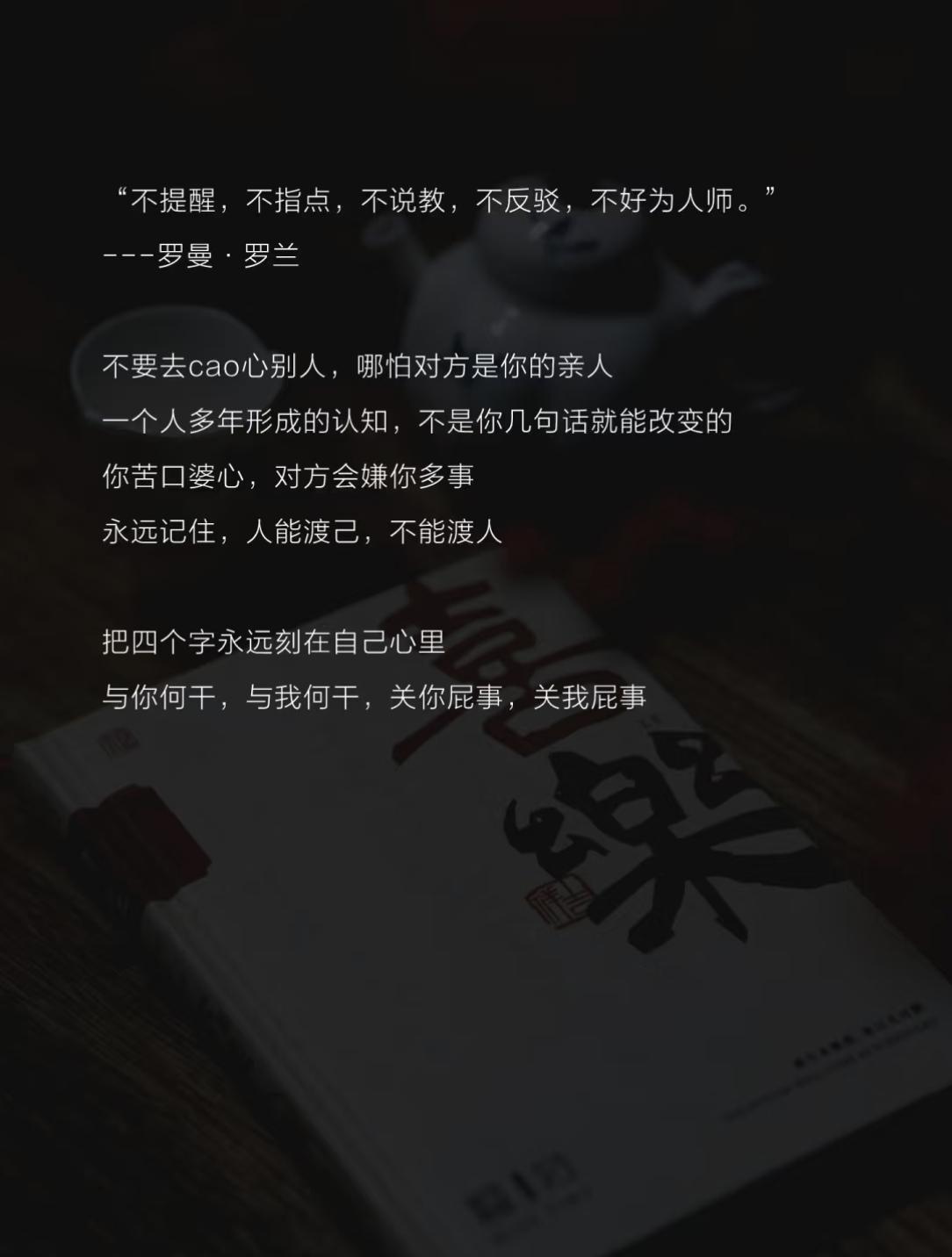 医不叩门,师不顺路,道不轻传,法不贱卖,所以作为成年人,免费教人就等于结仇。 你越主动,别人可能越恨你。当你主动去教的时候,对方的自尊心、防御机制立刻就会启动:轻的觉得你在显摆,重的直接把你当成假想敌。 因为教别人的本质就是在否定别人,不管你和对方是什么关系,没有人喜欢被否定,更不会感恩你。 所以千万不能主动去教人,更不能免费去教人,必须让他付出代价来求你教。 同时现代人防备心很重,免费的东西基本没有人相信有价值,可网上很多收费三五万,三天的课程基本也是忽悠为主,没有什么干货。 真正的干货是鲜有人传授的,而那些做授课老师的大都是本职工作不怎么样。例如那些教人炒股的人,如果真的炒股厉害,哪怕10万的本金,一个涨停就是12万,一个月22个交易日,每天复利20%,一年的时间就超越世界首富了,那他哪来的时间教人炒股。 现在是一个浮躁的快餐时代,我们自己去外面吃饭等半个小时都觉得慢,很多人希望点单之后3分钟就能上菜,所以预制菜应运而生。 而真正做一道好菜起码要半个小时才出炉,更别提慢火炖小粥!所以,赚钱我们更等不及,恨不得半年就收入倍增,一年就财务自由。 其实一个人从出生开始,到成为一个生产者。按照目前的情况,22岁大学毕业了才能够独立赚钱,养活自己,这都是经过了20多年的长期投入才有可能取得经济独立。 那么如果一个人的收入,不是一时一地,而是持续10年的每天进步一点点,哪怕开始的月薪是3000元,只要他按照节奏提升专业技能,随着经验的增加,10年之后月收入2-3万应该是顺理成章的。 而现实是很多人起薪就要3万,那他真的值这个价吗?又有那么多公司能给吗? ------------------------------------- 点个赞+小评一下,愿人生的旅途从容洒脱,不慌不忙; 关注我+收藏一下,愿岁月的长河浅笑安然,细水长流。 10月·每日幸运签秋日生活打卡季 万能生活指南
