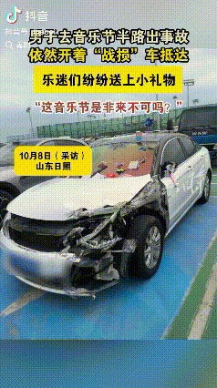 心态真好!山东日照,男子去音乐节,因高速上有积水,车辆打滑失控发生事故。 据冀时报道,10月8日山东日照,男子去音乐节,因高速上有积水车辆打滑失控撞上中央护栏,事故处理完后,男子想着已经走这么远快到了,于是就还是开着“事故车”去了音乐节,大家看到“事故车”纷纷在上面放了一些物料,男子感觉这个集体非常有爱,很暖心。 车都撞的不成样子了还有心情去音乐节,换做别人可能就会选择去修车,不过从这里可以看出男子不仅心态好,而且对音乐节也是非常的执着。 这件事也是告诉了我们,雨后路上有积水车辆容易打滑,开车一定要注意安全,小心发生事故。