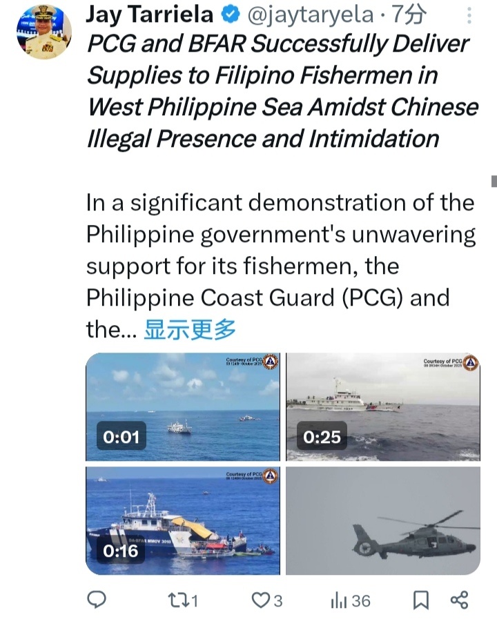 烽火问鼎计划菲律宾方面发了今天的视频,没有双方交锋的场面,就不转了。菲方称双方对