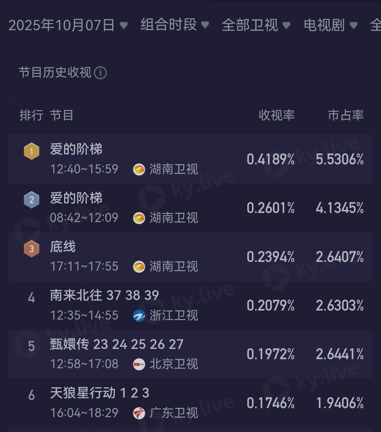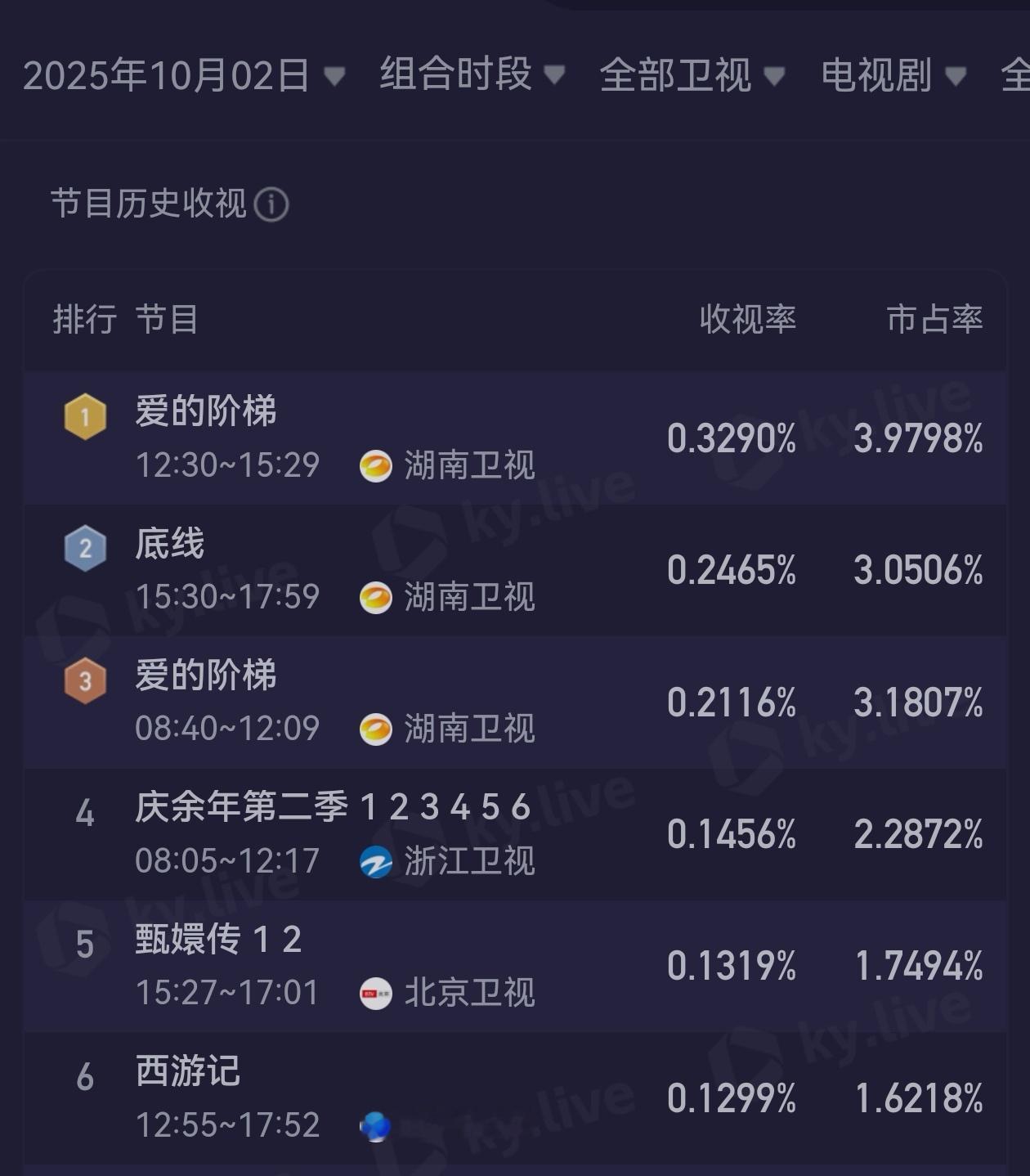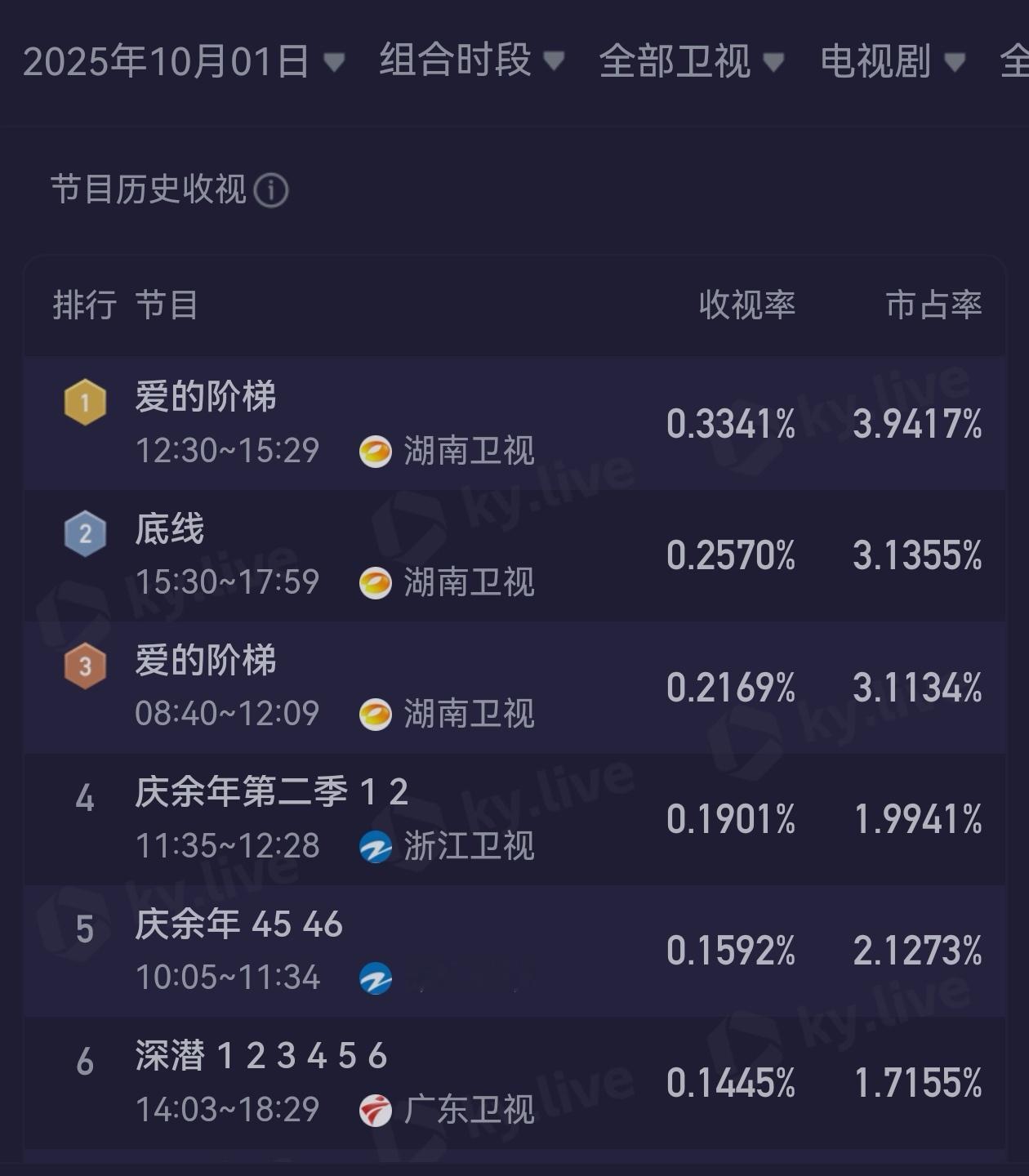 迪丽热巴主演的电视剧《爱的阶梯》在十一长假里勇夺卫视白天收视第一。在湖南卫视重播收视断层第一,今天单日平均收视达到0.45+,创造新高。已经十年的电视剧,播出效果还这么好,可见收视女王迪丽热巴自带观众缘,国民度很高。