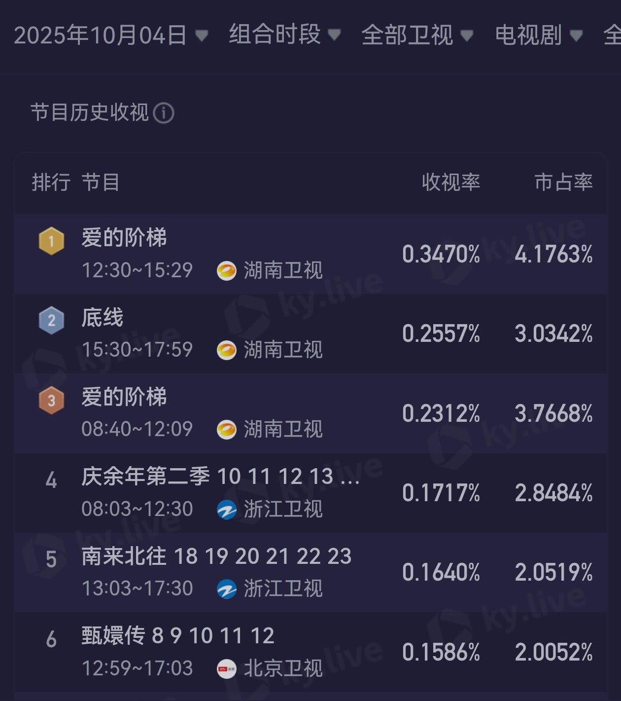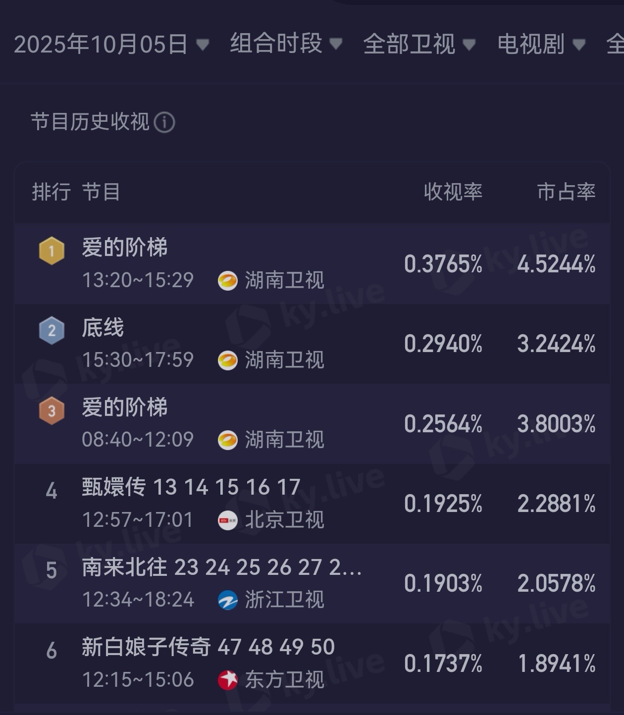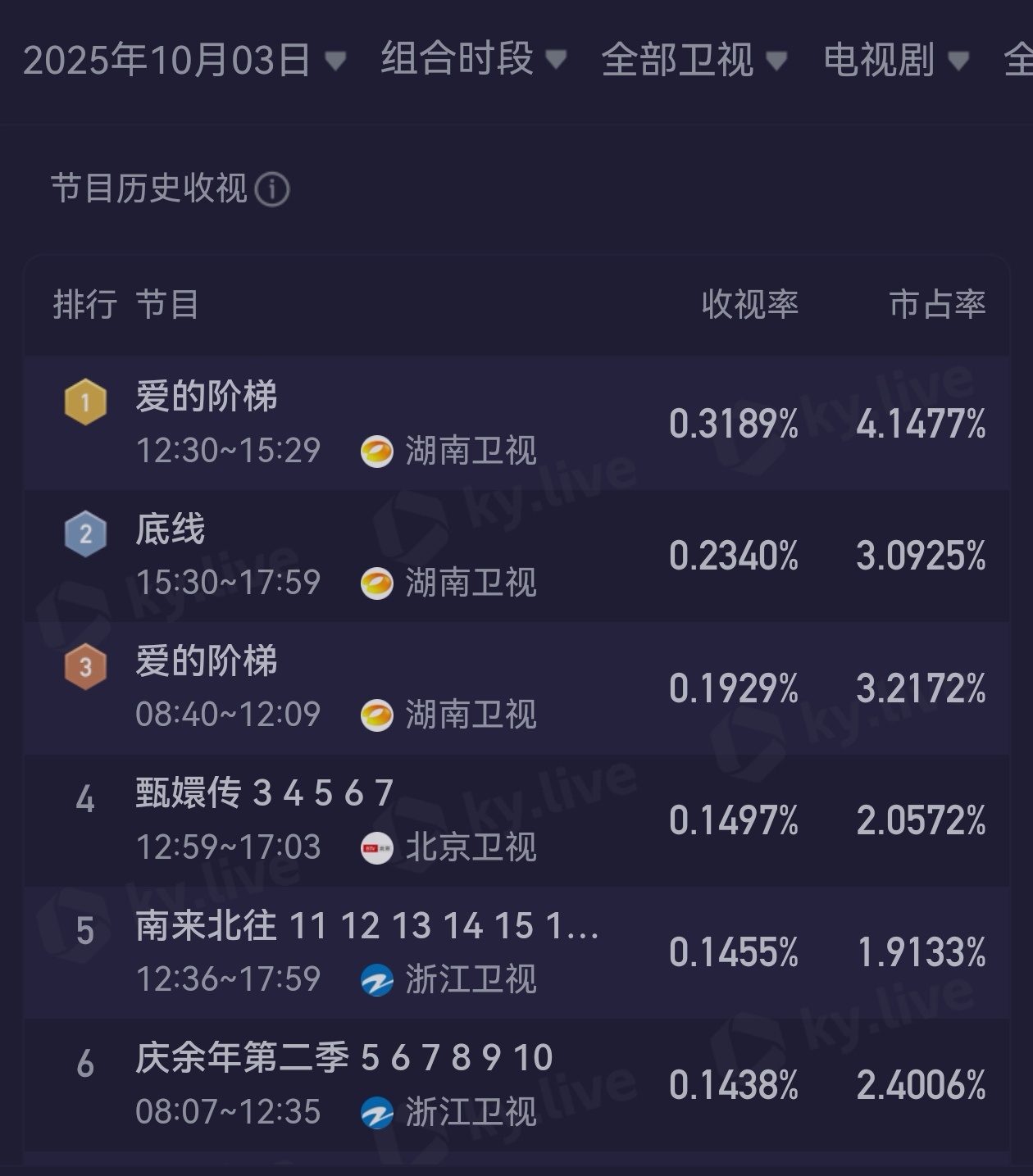 迪丽热巴主演的电视剧《爱的阶梯》在十一长假里勇夺卫视白天收视第一。在湖南卫视重播收视断层第一,今天单日平均收视达到0.45+,创造新高。已经十年的电视剧,播出效果还这么好,可见收视女王迪丽热巴自带观众缘,国民度很高。