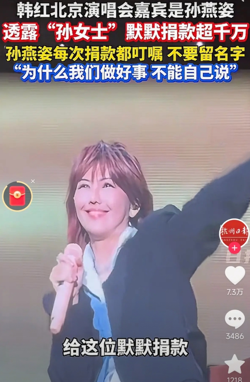 "冷门歌手"孙燕姿,最近又喜提了一个称号那就是"冷门慈善家"。韩红演唱会上孙燕姿做为嘉宾上台演唱。同时演唱会上韩红爆出了多年来孙燕姿一直在做慈善捐款,累积捐款已经上千万了,每次都以孙女士匿名捐款。