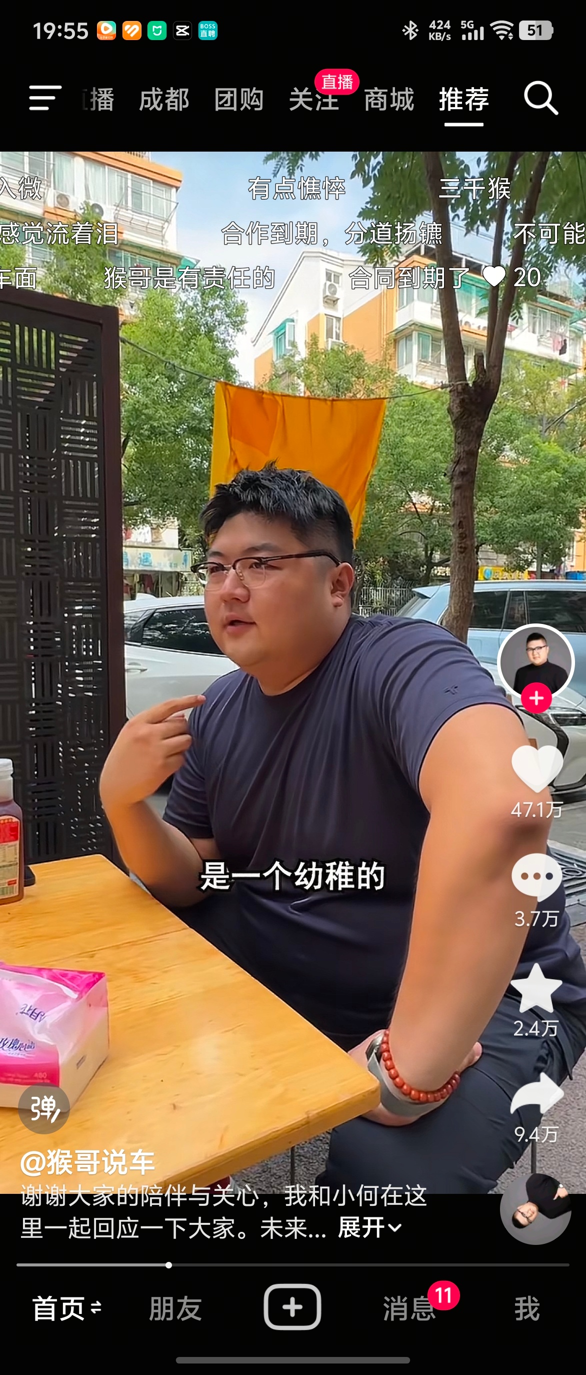 网红猴哥说车官宣离婚真离了?猴哥也终于出面了,何某音预告了2年终于离了[偷笑]
