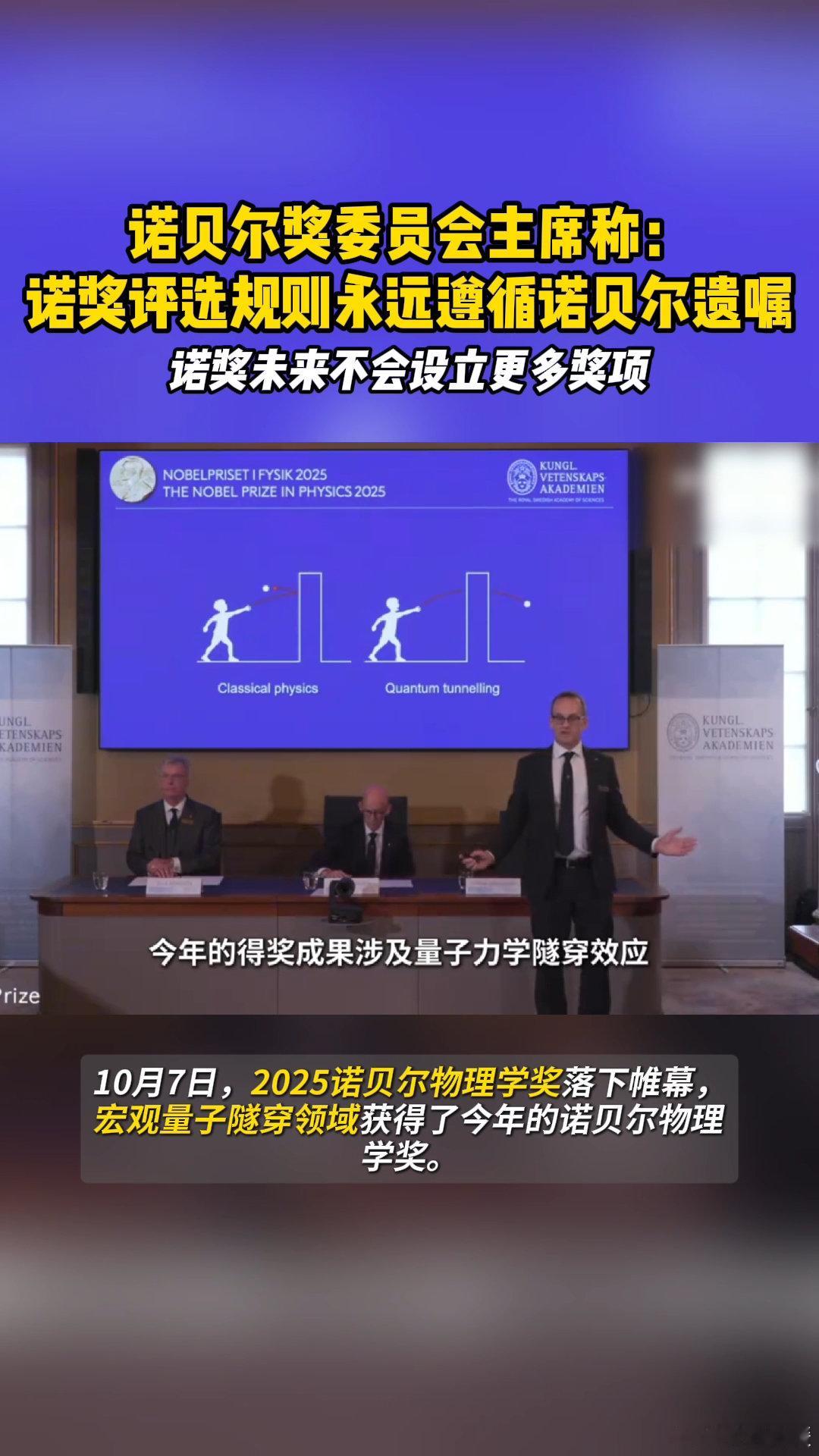诺奖评选规则永远遵循诺贝尔遗嘱 诺奖评选规则和诺贝尔遗嘱简直是“铁哥们”,形影不离。同时也宣告,未来在奖项方面“稳如泰山”,不会设立更多奖项,超稳的!诺奖未来不会设立更多奖项