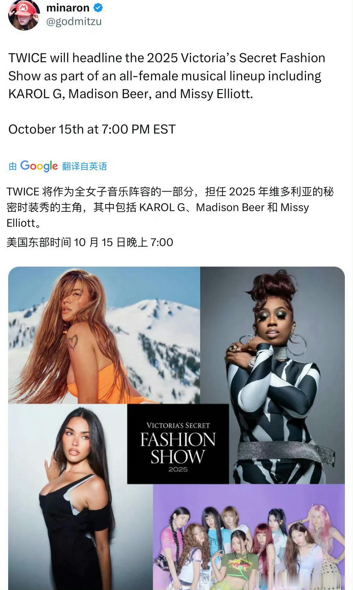 哇塞TWICE将担任2025维多利亚的秘密秀表演嘉宾(我蛮想看这个舞台的