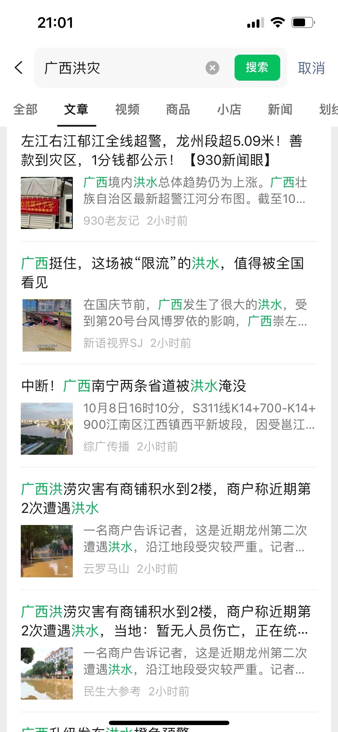 搜索“广西洪灾”,可以发现现在相关的报道实在是太少了。 一方面是很多人还沉浸在国