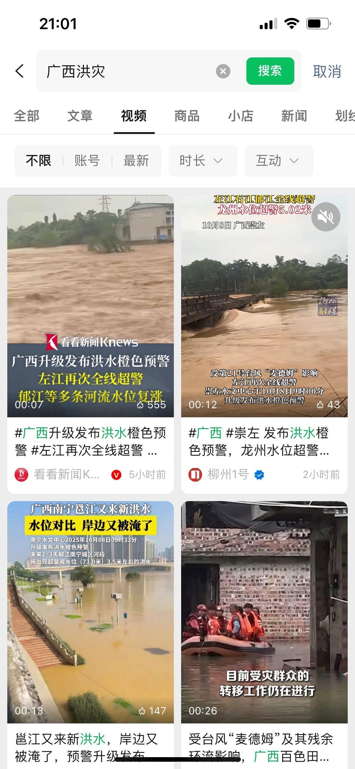 搜索“广西洪灾”,可以发现现在相关的报道实在是太少了。 一方面是很多人还沉浸在国庆的假期,关心的是哪里人多,哪里好玩,哪里好吃,啥时候我能回家,而关于相关洪灾的信息阅读较少,自然就没有流量了。没有流量一些媒体人就不愿意发相关的新闻,反而去关注景区“人人人”了。 另一方面是官方媒体对此的报道太少,没有官方媒体的引导一些自媒体也不愿意发声,导致越来越少的文章、视频,失语。 大家还是要多关注一些广西的洪水灾害,作为自媒体的一员,没有捐款就多发发声吧。广西洪灾情况如何 广西百色洪灾