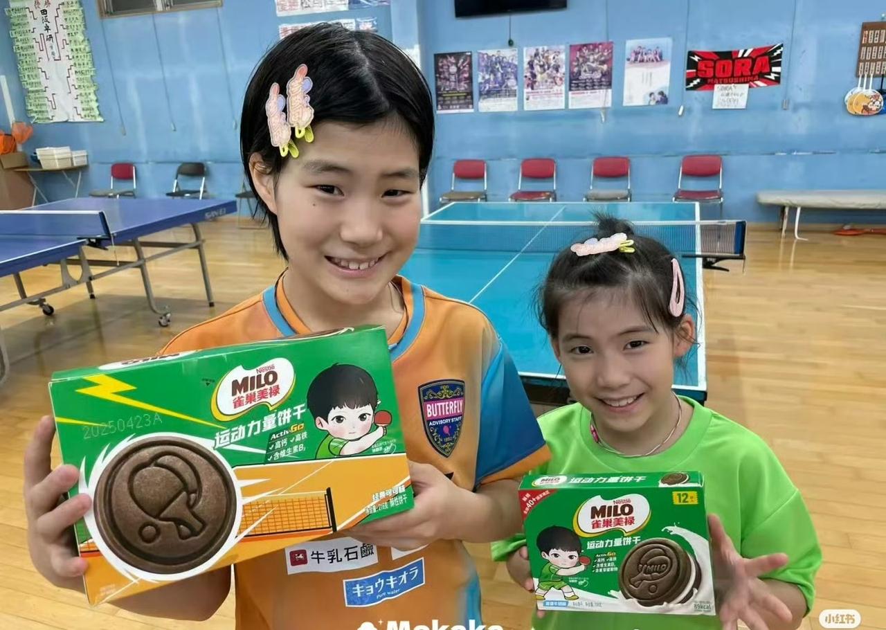 收到了孙颖莎代言的礼物好高兴啊[笑哭], 这姐妹俩叫松岛美空和松岛爱空,她们收到了孙颖莎代言的饼干和周边应援礼物,她们表示很是喜欢很开心。 对,她们是大家熟知的“少爷”松岛辉空的两个妹妹,松岛美空2013年出生,松岛爱空2015年出生。 据说这个盒子超级可爱,饼干也很好吃[舔屏]。 仔细看,她们头上的发夹也是印有莎莎大名的发夹啊,也是莎莎代言的,我就想知道哪里搞的?我也想要一个[惊喜]!