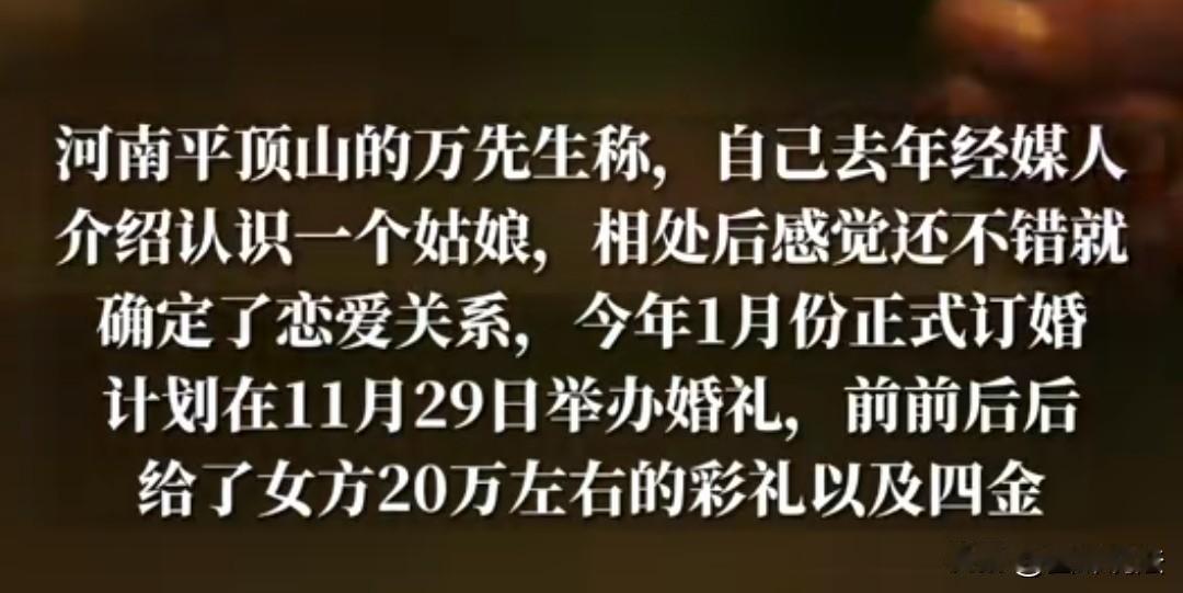 活久见!河南平顶山,女子在婚礼前两个月悔婚,男方认为两人婚纱拍了,婚宴酒店也定了,亲戚也通知完了,说不结婚就不结婚,要求女子返还20万彩礼。可女子说俩人拥抱了,要扣除3万元的拥抱费,只愿意归还17万。 万先生觉得很委屈,明明是王女士(化姓)不仁义,婚礼前的一切已经准备好了,她却说悔婚。 万先生知道强求的婚姻不会幸福,他接受了王女士悔婚的事实,但要求她返还20万彩礼。 但王女士并不想归还全部,称要扣除3万元的拥抱费。 拥抱费听都没有听说过,万先生觉得很不可思议,而且还是拍婚纱照的时候,摄影师要求的。 想起当初和王女士的相识相知,他就觉得真心错误,他很后悔。 万先生和王女士是经媒人介绍认识的,俩人一开始都看对眼,后来就经常相约,久而久之就有了结婚的打算。 经过双方父母的商量,俩人于今年1月份订婚了,而婚礼也定在今年的11月底。 订婚后没有多久,万先生为了做好婚礼前的准备,和王女士拍了婚纱照,定了婚宴酒席,也通知了亲朋好友。 眼看着婚礼日期快要到了,万先生很是期待。可就在他满心欢喜的期待婚礼到来之时,王女士却提出退婚要求。 男方多次劝说,就连媒人也出面调解,但王女士是铁了心不想结婚,说什么都要退婚。 强扭的瓜不甜,万先生知道即使勉强在一起,婚后的生活也会是鸡飞狗跳,他同意王女士退婚。 既然俩人不结婚了,万先生认为,之前给王女士的彩礼以及送女方的一些礼金就应该归还。 万先生整理了一张账单,里面罗列了为王女士所花的钱,总计20多万,其中包括六万六千元彩礼,六万元的四金。 王女士一方承认万先生的清单,但表示只愿意归还17万,其他的3万算是给她的拥抱费。 一听到这拥抱费要3万元,万先生不淡定了,他觉得真是稀奇,俩人已经订婚了,拍个婚纱照应摄影师的要求拥抱一下不是很正常吗? 媒人已经70多岁了,他也是第一次听说这个费用,指责女方这就不是人干的事,他说他说了1000多次的煤,就王女士这一家事多。 他也亲自到王女士家调解退彩礼一事,双方激动差点还动手了。 万先生认为王女士退婚心原因是嫌弃他工资低,可面对记者的回答,王女士表示不是这样的,她说是因为俩人性格不合,说不到一块。 媒人当面指责王女士和她父亲,说他们不干人事,哪有人要扣拥抱费的,而且还是3万。 他说又不是万先生单方面拥抱,王女士也拥抱了万先生啊,难道王女士就比较金贵,抱一抱旧要3万。 王女士父亲听不下去了,喊向媒人,说不要瞎扯,表示他们确实说过拥抱费3万,但其实涵盖了恋爱一年女方的花费。 最终男女方自行协商一致,现场退还17.5万元现金。 1、王女士临近婚礼悔婚,先不说她有过错,即使没有过错,只要俩人最终决定不结婚,女方都是应该退还彩礼的。 最高人民法院关于适用《中华人民共和国民法典》婚姻家庭编的解释(一)第五条规定:当事人请求返还按照习俗给付的彩礼的,如果查明属于以下情形,人民法院应当予以支持: (一)双方未办理结婚登记手续; (二)双方办理结婚登记手续但确未共同生活; (三)婚前给付并导致给付人生活困难。 适用前款第二项、第三项的规定,应当以双方离婚为条件。 从万先生的说辞来看,双方既没有结婚,也没有共同生活,因此他要求王女士退还彩礼合情合理。 2、王女士在万先生提出退还彩礼时,她提出要扣除3万元的拥抱费,合理吗? 《民法典》第十条规定: 处理民事纠纷,应当依照法律;法律没有规定的,可以适用习惯,但是不得违背公序良俗。 法律规定并没有拥抱费一说,而且在生活当中也没有听说过拥抱费,更不用说退彩礼时要扣除这个费用的,因此王女士的要求并不合理。 对于此事,您怎么看?