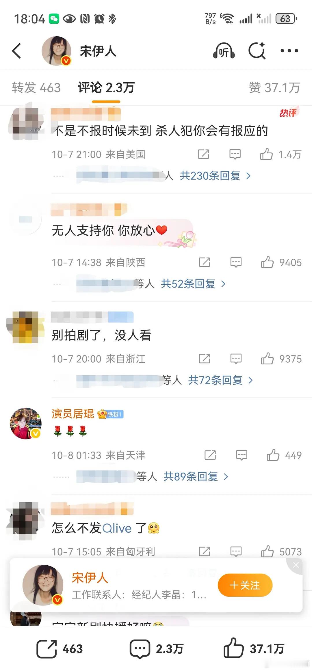 宋伊人最新微博评论区….这么久了还有这么多人高赞抢前排吗…..会不会有💦军啊