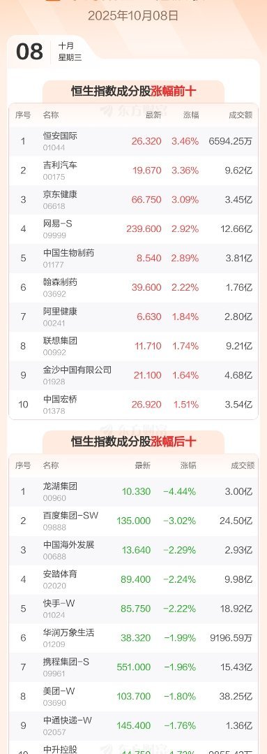 10月8日港股收评:恒指微跌0.48%,这些板块逆势走强10月8日港股开盘后震