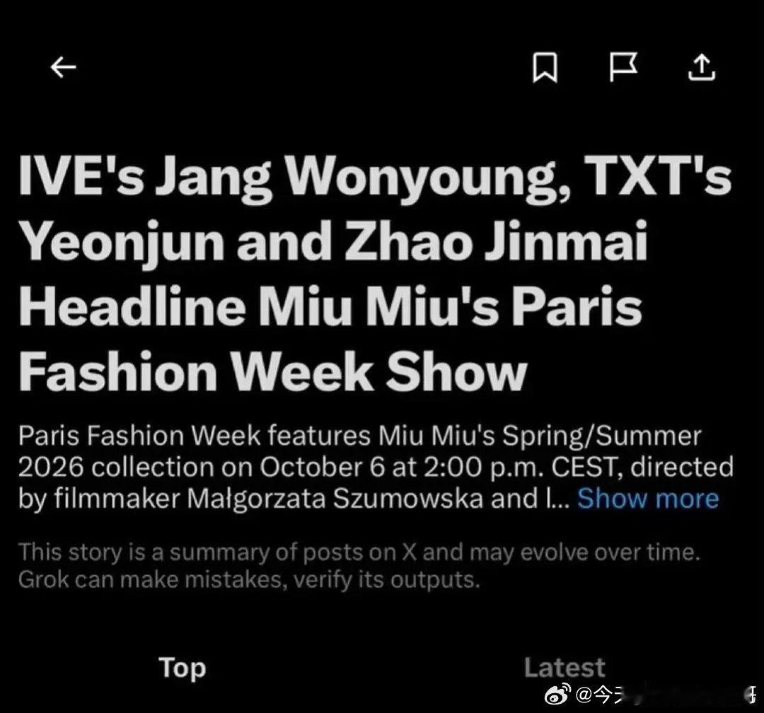 miumiu大秀后第一个单人共创是赵今麦,也是大秀前品牌的海外头条人物中唯一中国艺人