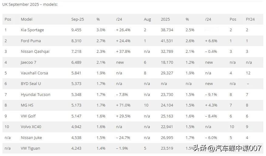 变天了,变天了,华系车在英国卖爆了! 刚刚过去的9月份,国产品牌比亚迪、名爵、奇
