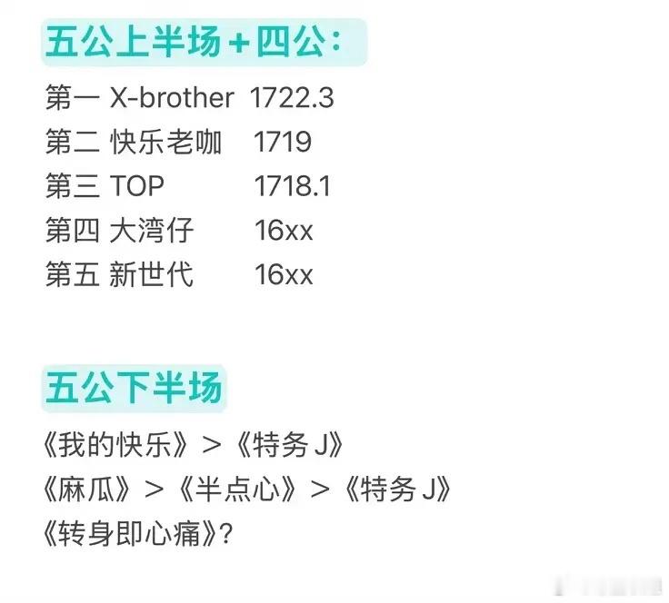 从初舞台第一名,到后续公演成绩起伏,甚至一度进入危险区,快乐老咖的“高开低走又高收”剧本在五公并未圆满,他们仍需在总决赛中证明自己。