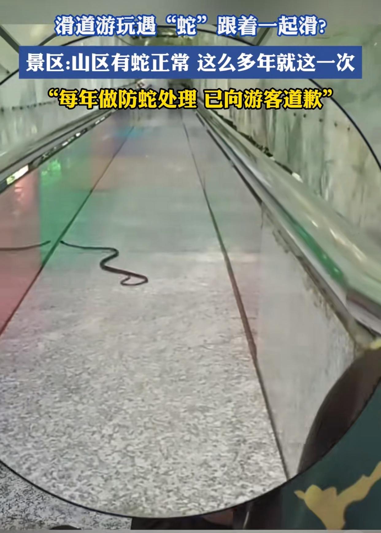 要是慢一点,刹个车,下面的游客也是绝望了!近日在广西南丹县丹炉山景区,一游客在玩滑道时,一条约1米长的蛇突然从上方向下滑落,从他的双腿下方穿过后继续一路向下滑行而去! 事后视频发出后景区也主动联系游客道歉了,当时可能工作人员也吓懵了,未能及时安抚游客,抱歉了! 景区也表示山区里有蛇挺正常的,这么多年就碰到这么一次,每年都有做防蛇处理! 不过这“天将小蛇”真是吓人,一样的收费,不一样的体验,还好这小蛇没有来一个“蛇吻”,但游客以后再玩这项目时,怕多多少少都有心理阴影了! 虽然这次是偶然的事件,但也给其它生态景区提个醒,如何在生态保护的同时保证游客安全,让游客们不再伴随着未知的危险! 最后蛇说:我就不能玩滑道吗,就你能玩🐍