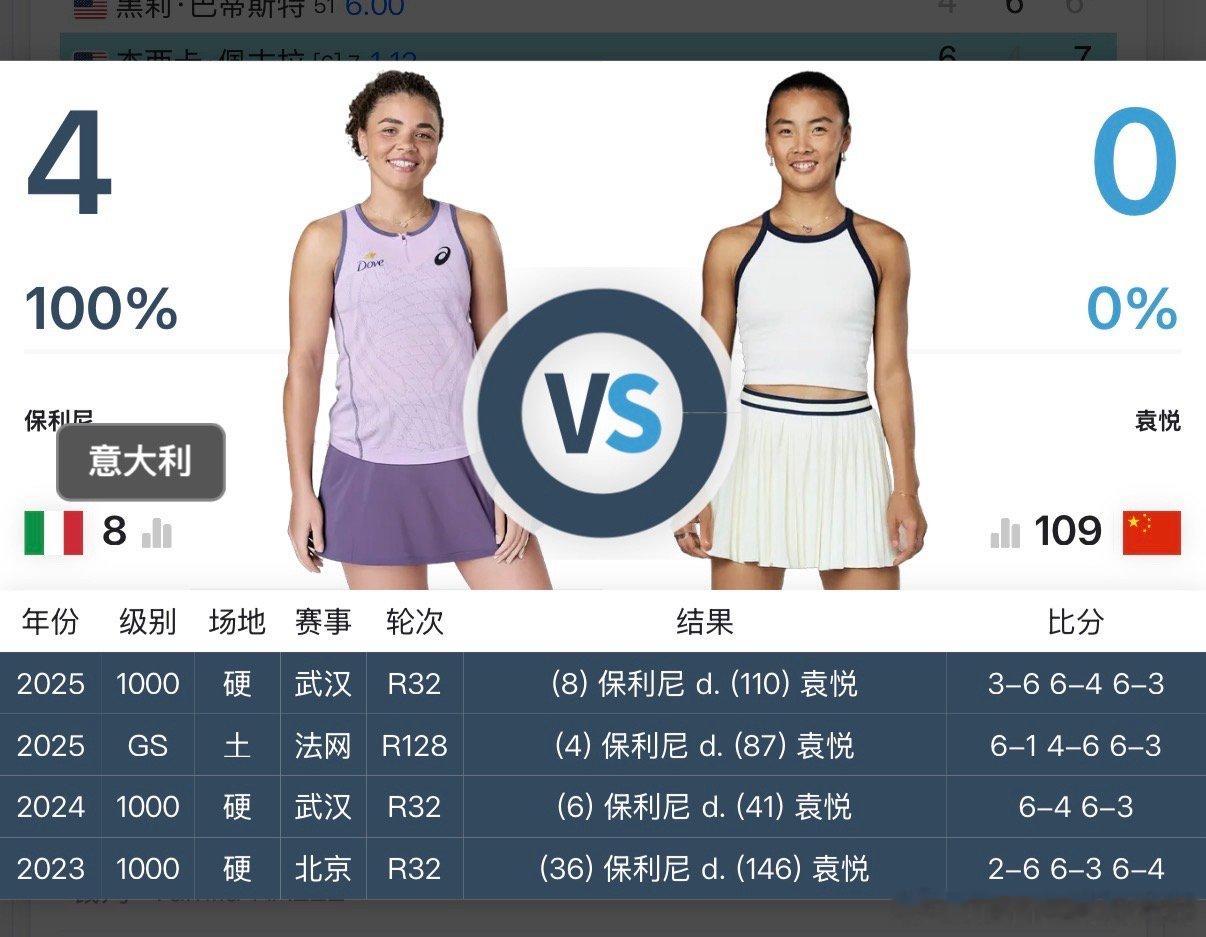 ❌🇨🇳袁悦6-3/4-6/3-6负不敌【7】🇮🇹保利尼
