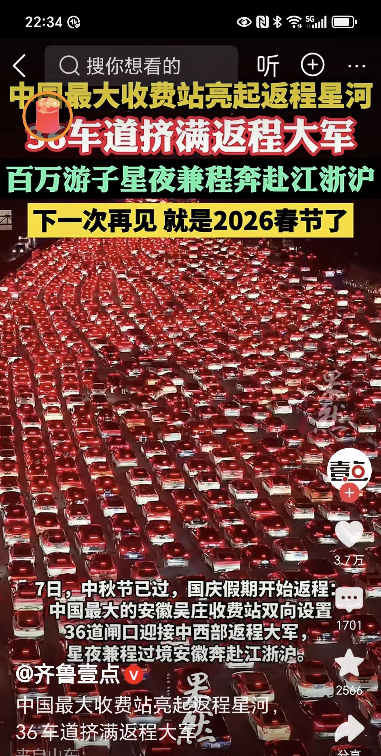 集中放假,高速公路的壮观景象,这是济南最大的收费站。36条车道,车辆被堵在这个闷葫芦里的壮观场面