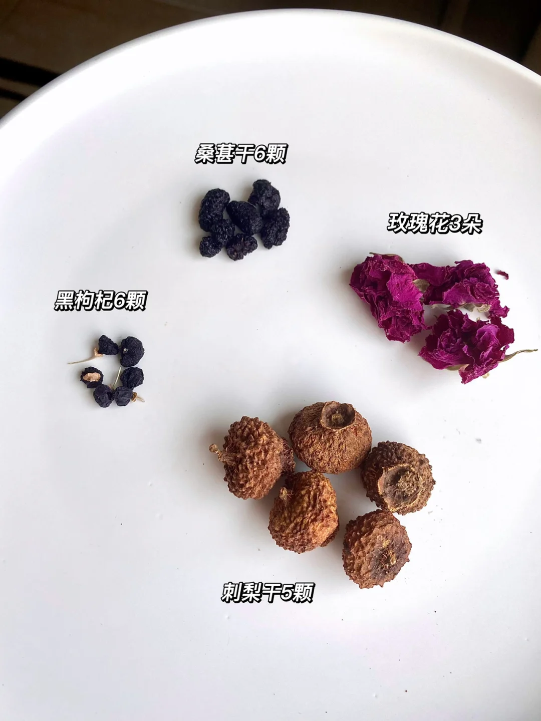 钟爷爷推荐的刺梨,水果中“的VC之王” 超强美白,抗衰老,还能提高免疫力 对皮肤和身体都贼好,维C丰富 日常可以和花茶搭配冲泡 简单方便! 📝食材:刺梨5颗➕玫瑰花3朵➕桑葚干6颗➕黑枸杞6颗(温水冲泡)可以复泡哟~ 🌟刺梨本身营养价值高,维C是苹果的646倍❗️是猕猴桃的16倍❗️搭配桑葚和黑枸杞冲泡,花青素满满! 对皮肤真的太好了!酸酸甜甜,好好喝!! 快点安排起来吧~夏天一起变白白~