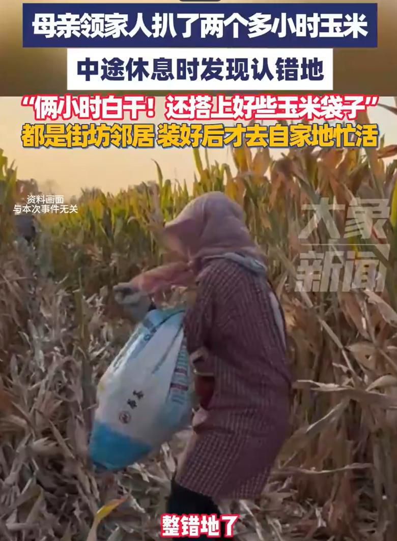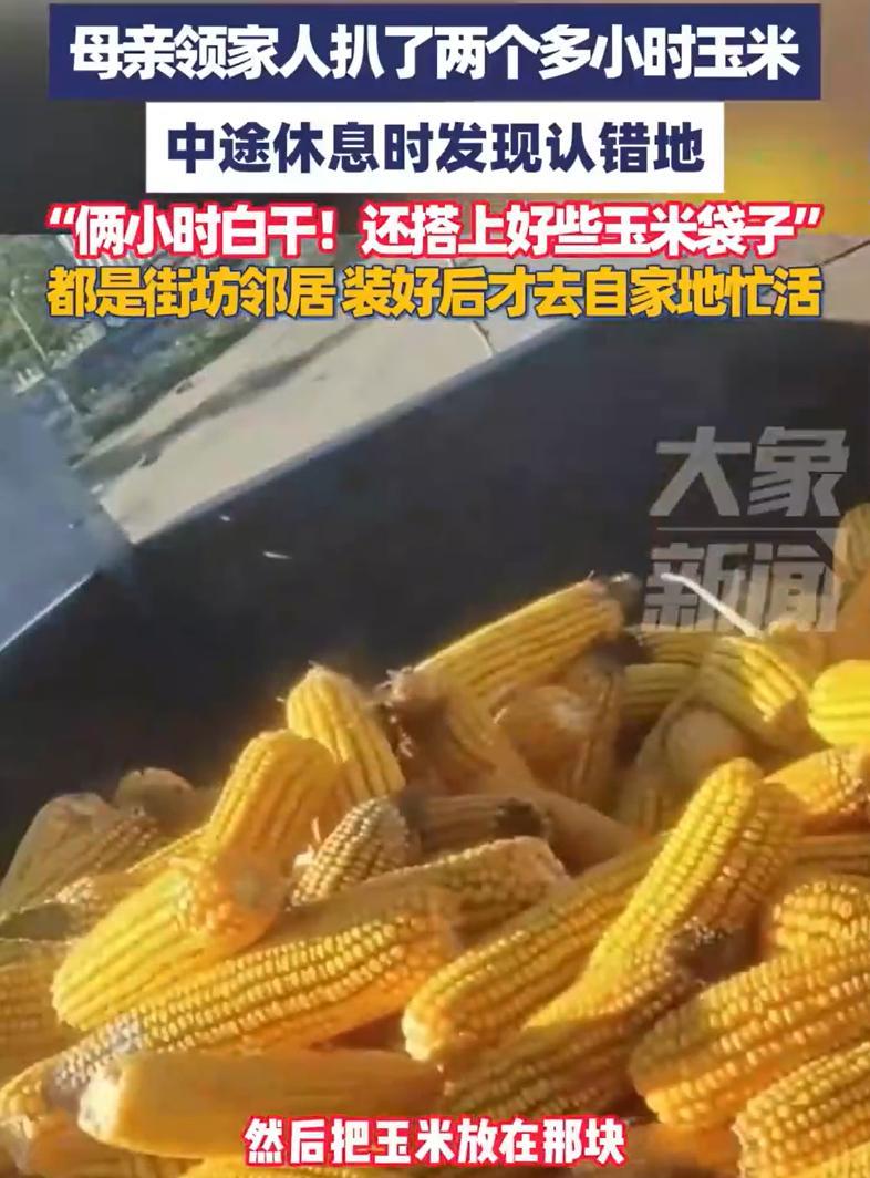 “最担心的事情还是发生了!”黑龙江齐齐哈尔,一家人假期到地里去掰玉米,干了整整两个多小时,可中间休息时,突然发现不对劲,仔细一看这压根不是自己家的地,而是邻居家的,合着之前的活都白干了 每年国庆假期,正是东北收玉米的季节,薛女士也是回家过节后,跟着妈妈一起去地里掰玉米,可干了两个小时,一家人坐着休息时,父亲最先发现不对劲,这不是邻居家的地嘛,当场闹了个大乌龙 随后薛女士打电话告知邻居,把掰好的玉米堆到了一边,算是帮邻居家分担了不少活 说实话,这样的乌龙在农村,还真挺常见的,有时候,同村各家的地分在同一块大田里,玉米又长得高,尤其是最后一段时间,地里地外的草也长起来了,有的地有大路或田埂隔着,有的地甚至根本没有田埂相隔,只是两家播种时留下很窄的一条空隙,很容易认错 而一旦认错干起来就没再辩认的心思了,直到歇歇儿时来到地边喝水吃东西什么的,才会看看,这时就会发现弄错了 有网友说:那就让邻居去扒自己家相同的面积的玉米不就可以了 说实话,这种说法多少有些较真了,这本来就是自己的错误,没必要让别人来买单,更何况都是邻里乡亲的,或许你觉得自己干活了,邻居还不想让你掰,这就更尴尬了