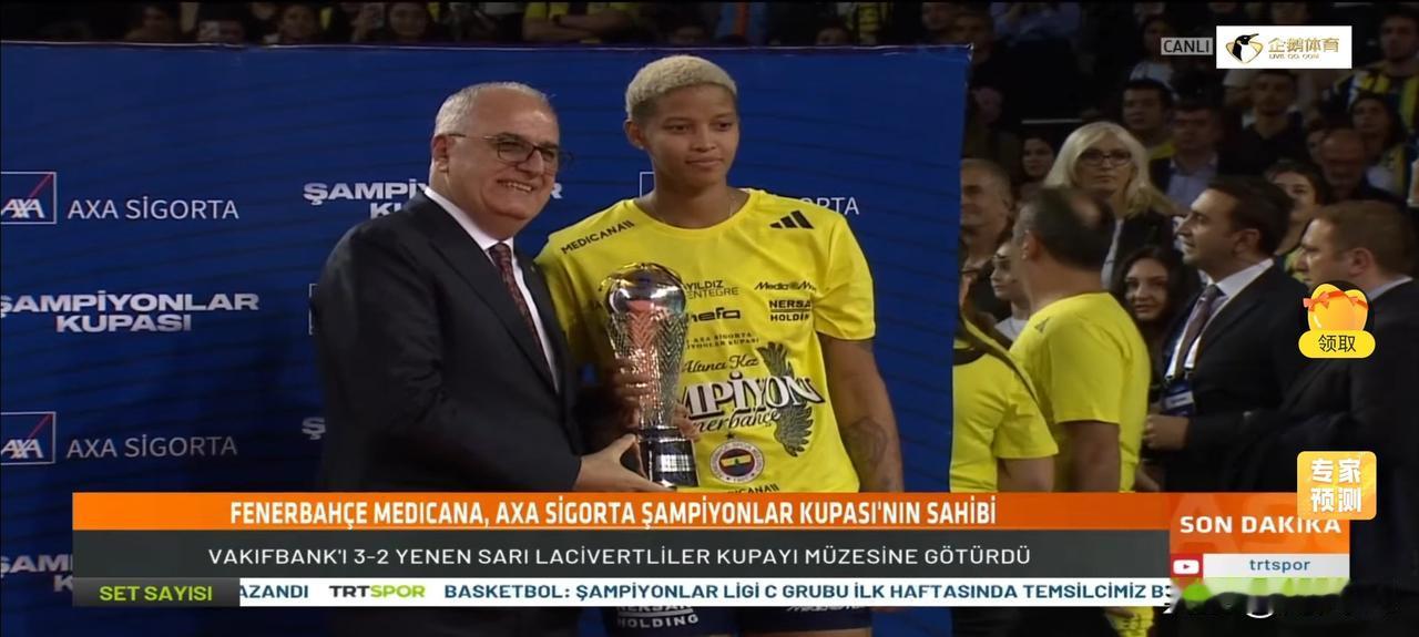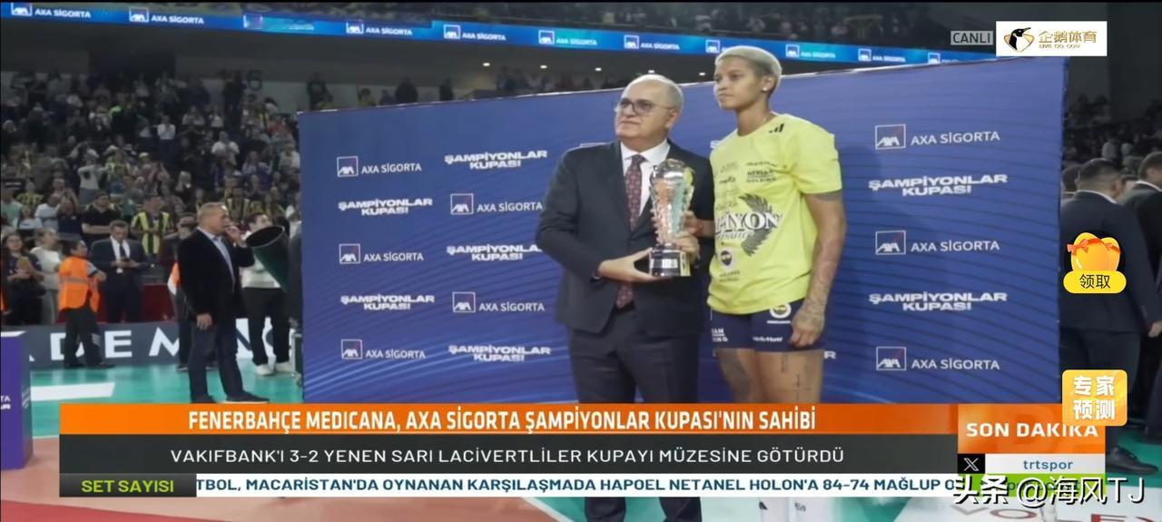 🇹🇷费内巴切女排第六次夺冠 2025土耳其🇹🇷俱乐部超级杯决赛中,费内巴切女排3:2逆转瓦基夫银行女排夺冠。这也是该俱乐部的第六次夺冠。她们打破了自己保持的冠军记录,此前,费内巴切,瓦基夫银行,伊萨奇巴希均有五次超级杯冠军。 费内巴切女排的瓦尔加斯夺得最有价值球员(MVP)。 特别值得一提的是,刚刚加入费内巴切的二传奥罗也是在🇮🇹米兰俱乐部女排多年未见过冠军奖牌后的第一次欧洲俱乐部大赛的首枚金牌。 另外费内巴切五局大战先23:25;21:25输掉头两局后,25:19;25:18连扳两局,大比分2:2扳平比分。决胜局也是先输后赢最终18:16取胜。 瓦基夫银行女排的这种被逆转让瓦基夫银行俱乐部的球迷们对主教练(老褶子)的执教能力产生怀疑。