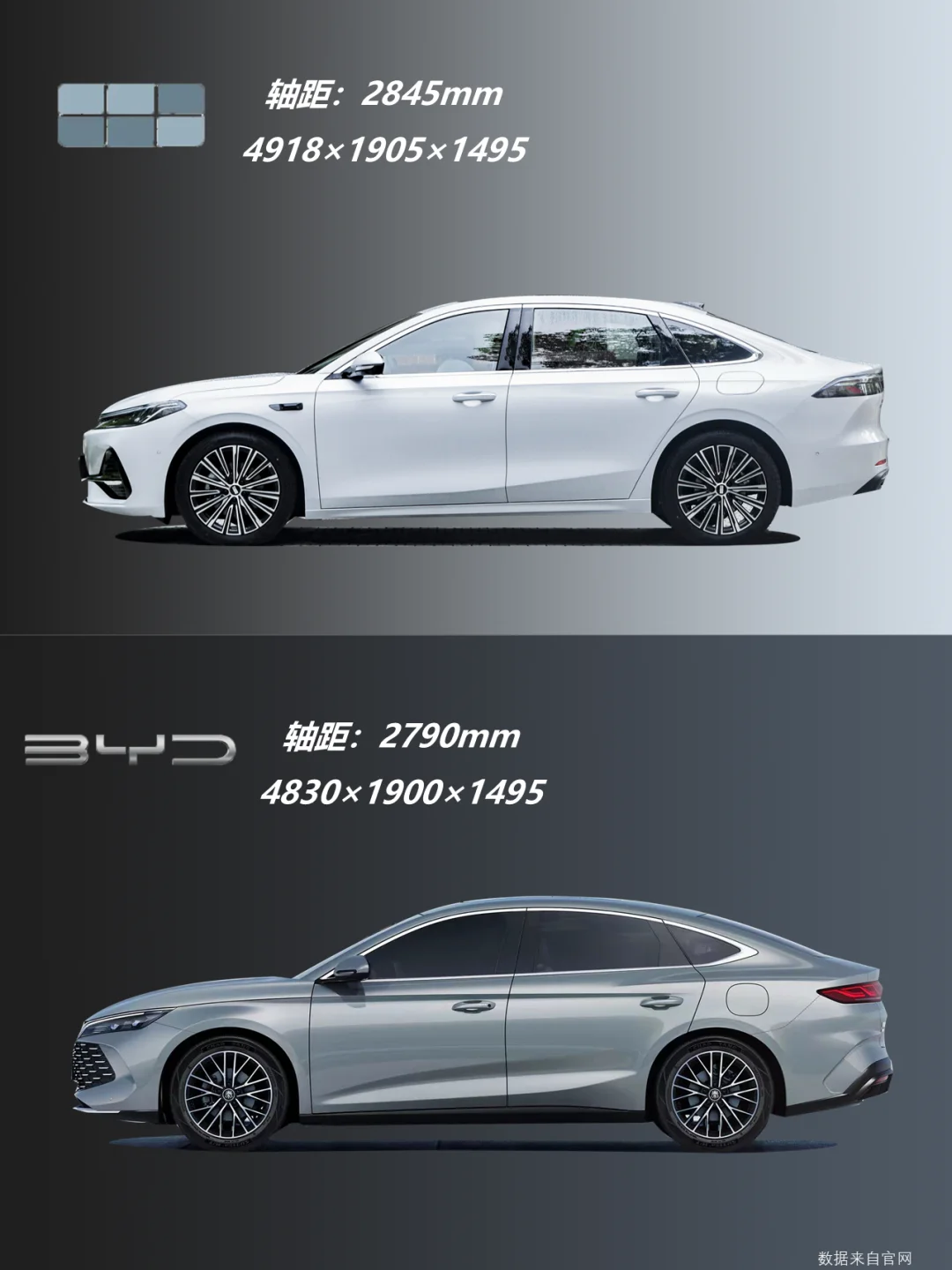 ● 车身尺寸:银河A7长宽高为4918mm、1905mm、1495mm,轴距2845mm。秦L DM长宽高分别为4830mm、1900mm、1495mm,轴距2790mm,银河A7在车长和轴距上更具优势。