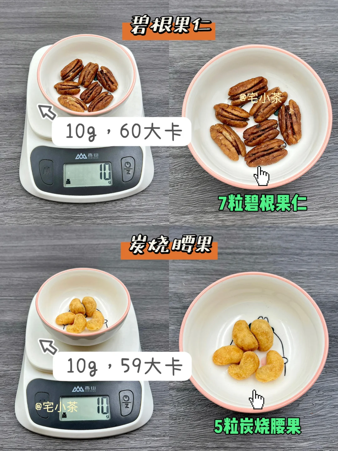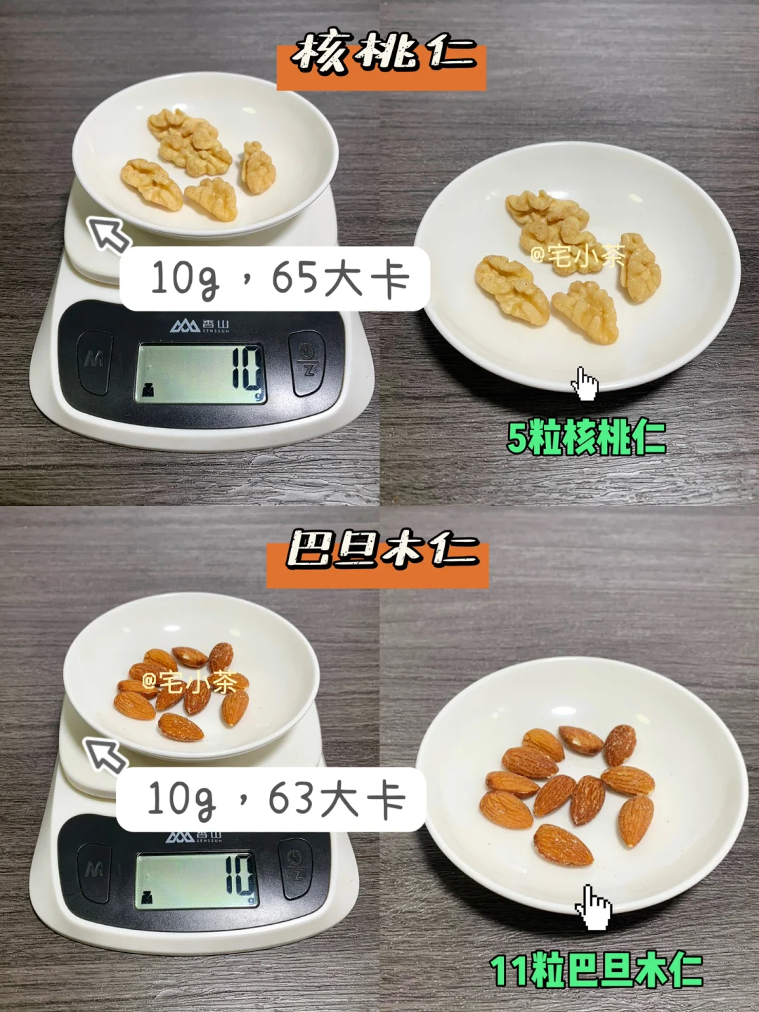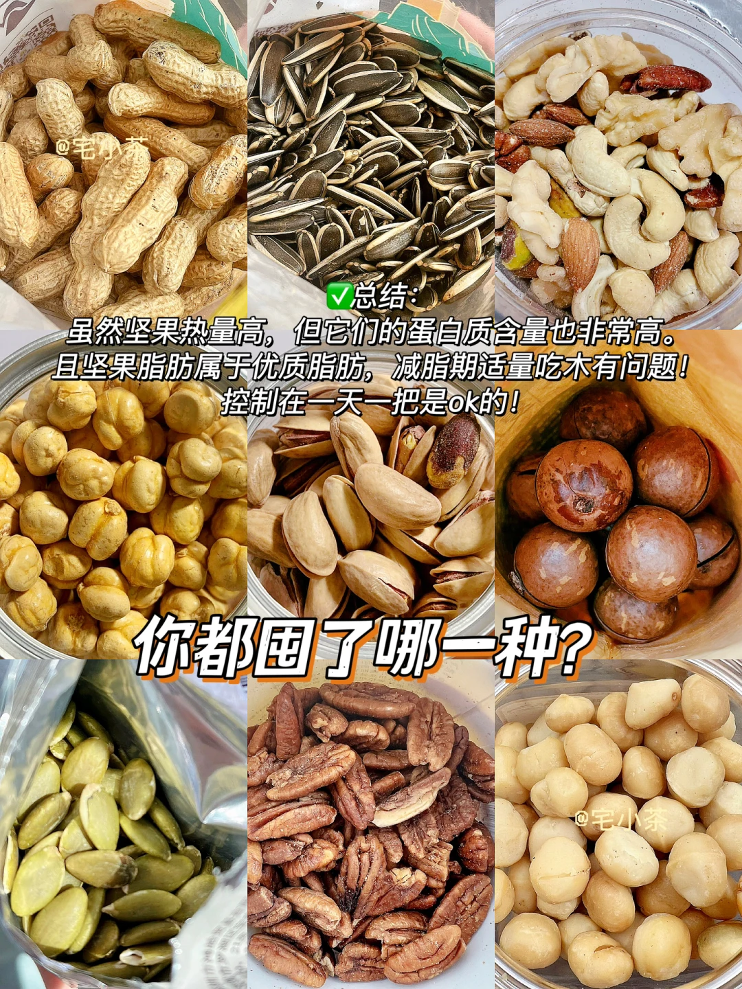 今天就是各种坚果的热量测评~坚果虽然热量高,但是它们的蛋白质含量也高,脂肪属于优质脂肪,减脂期适量吃木有问题!控制在一天一把是ok的~[派对R]