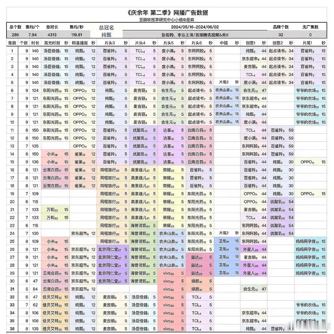 《许我耀眼》都播到三分之四的进度啦,不过招商这块儿成绩不算特别突出,目前只有16个品牌投了59个广告。跟《庆余年》《繁花》《玫瑰的故事》这些招商总数超300个、品牌超40个的剧比起来,广告数量上的差距确实挺明显的,一眼看过去广告密度差别很大。但话说回来,这部剧的讨论热度是真挺高的,那为啥招商成绩一般,资本好像不太“买账”呢?有可能是营销投入大,造成了表面很热闹的“虚假繁荣”效果;也有可能是赵露思经纪公司之前那些纠纷,多少对剧的招商产生了一些影响。