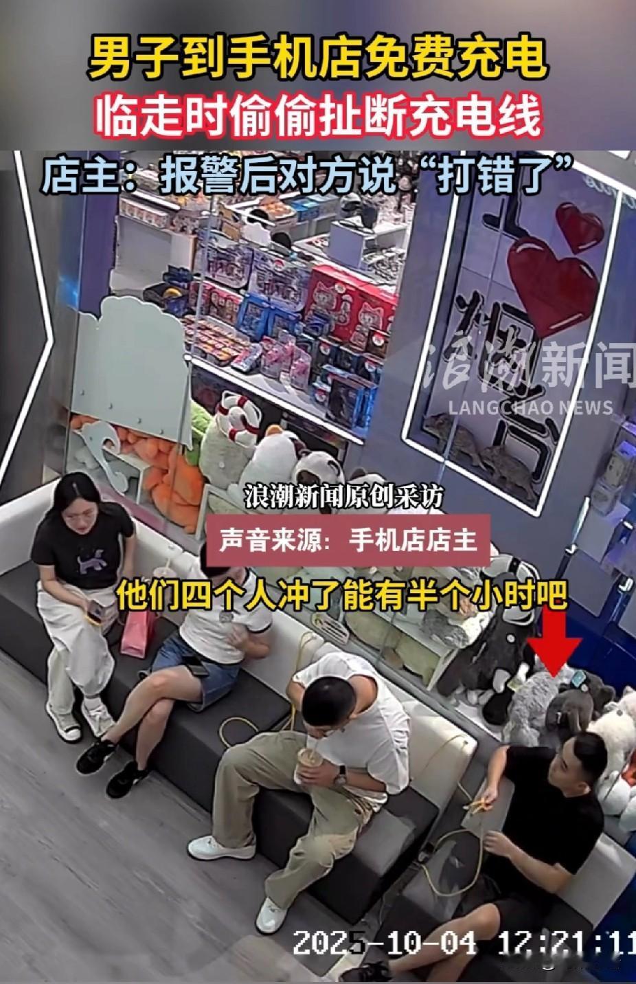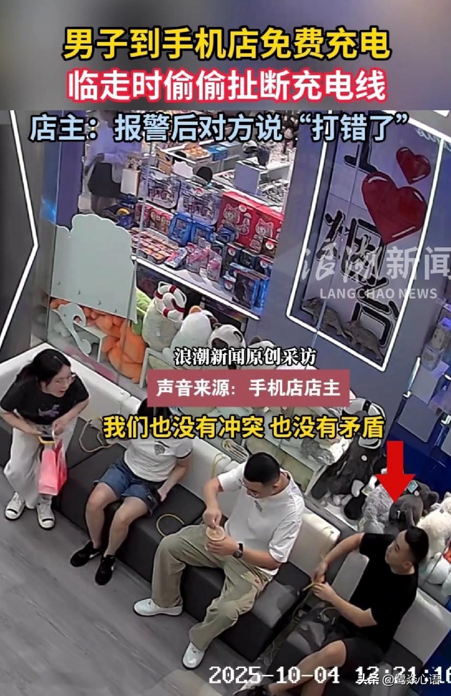这年轻人干出这么缺德的事!太让人生气了!免费充电半小时,临走竟把充电线撕断?!烟台这家店的监控,拍下了令人发指的一幕! 店主好心提供便利,换来的却是恩将仇报! 事发山东烟台一家手机店。监控画面清晰显示,一名黑衣男子在店内享受了足足半小时免费充电服务。然而,当他准备离开时,并非心存感激,而是做出了令人瞠目的举动——他竟故意将店内多根公用的充电线扯断!更可气的是,动手前他还特意回头张望,观察店员是否注意到他,行迹鬼祟,显然是明知故犯。 事后,店主发现充电线被毁,立即选择报警。但当联系到这名男子时,对方的态度更是火上浇油——他竟矢口否认,抵赖到底!“你在我店里是不是把我数据线给我撕了?”面对质问,他选择了最懦弱的回应:我没有!竟然敢做不敢当呀! 真是林子大了什么鸟都有!店家一片好心,免费提供便利,不图你感谢,但最基本的道德底线总该有吧? 这倒好,不仅不感激,反而偷偷摸摸搞破坏,将人家的善意踩在脚下!这种行为,损人不利己,连最起码的脸面和功德都丢光了! 愤怒之余,不禁让人想问:他图什么?他这么做,究竟出于什么心理?难道,真的就只是“坏”吗?这种毫无逻辑的恶意,实在令人费解,更让人心寒!手机充电线折断